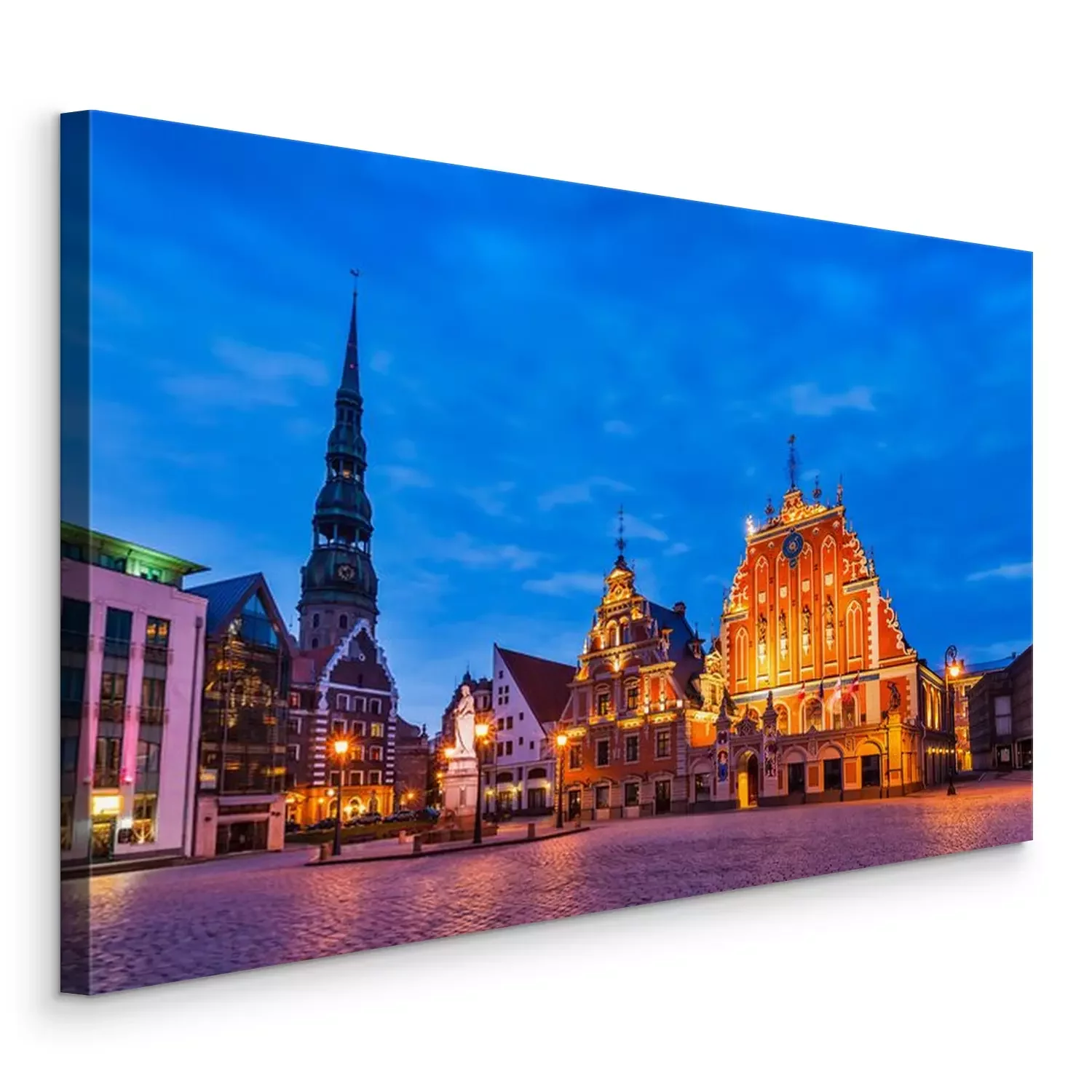 Canvas: Riga Stadhuisplein, Huis van de Mee-eters, St. Roland Statu
