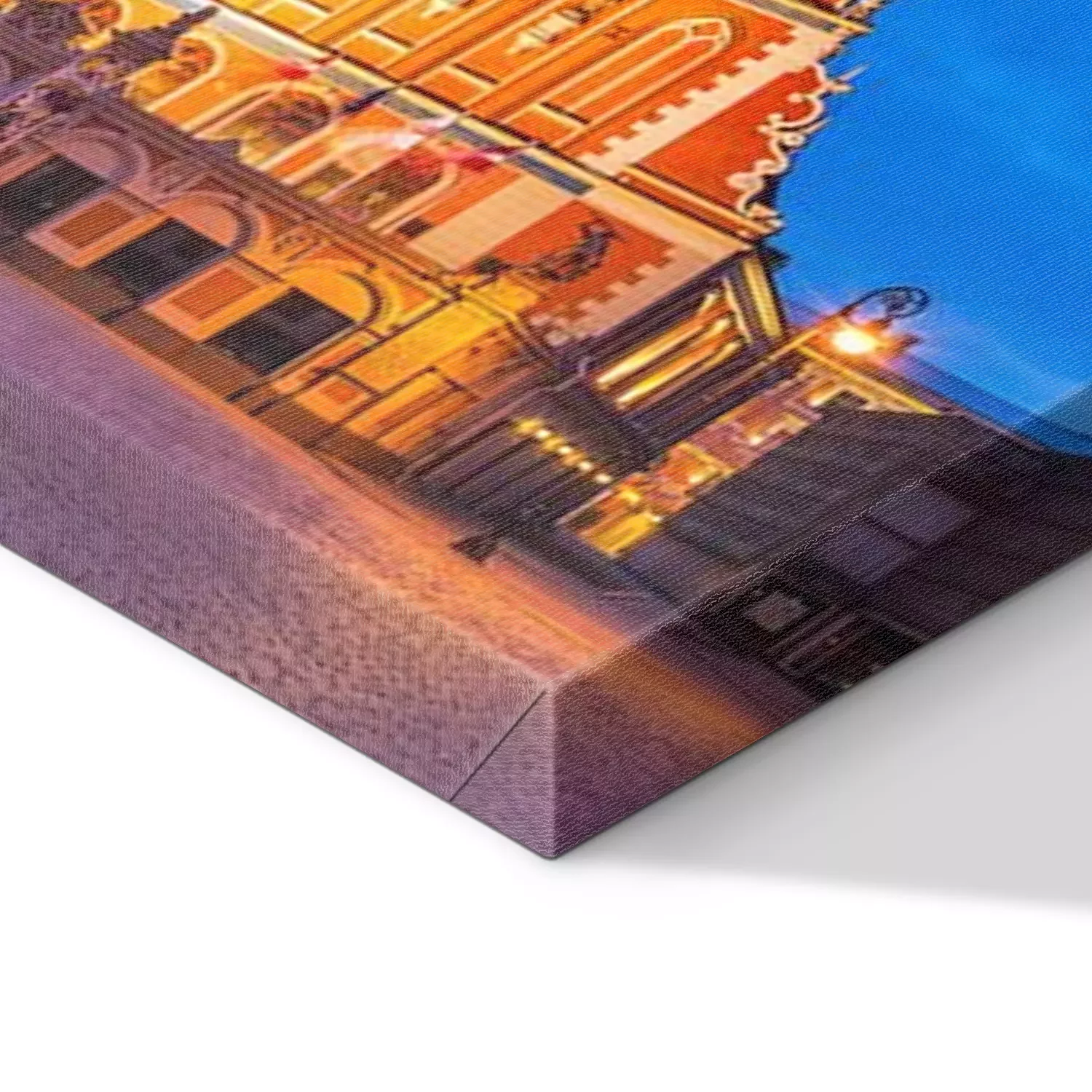 De print wordt aangebracht op hoogwaardig canvas dat op een schildersweefgetouw (spieraam) wordt gespannen. Omdat de print de zijranden bedekt, hoeft het ontwerp niet met een extra kader te worden omlijst. Wij raden ook composities aan die uit meerdere foto's bestaan en zo een coherente compositie vormen.