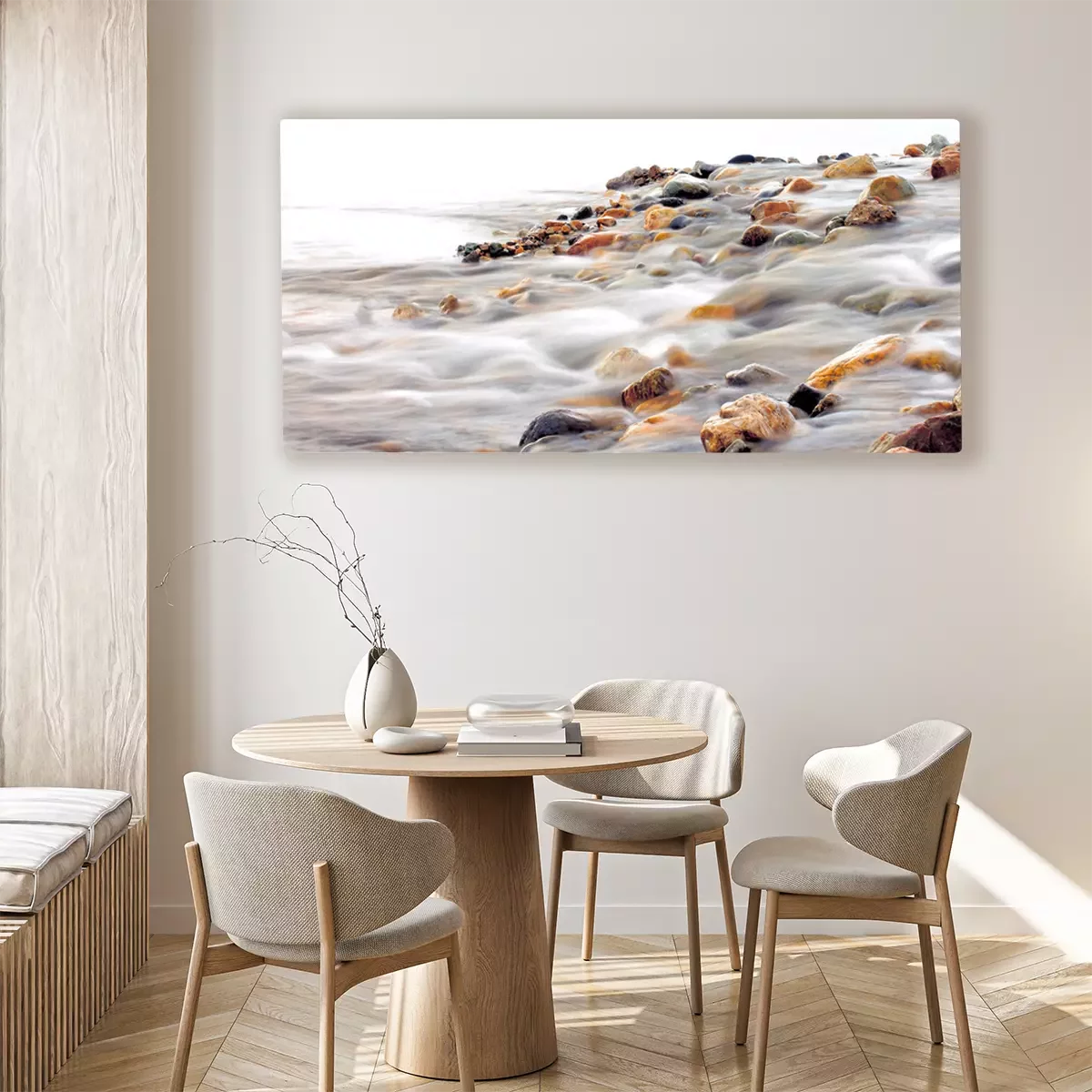 De print wordt aangebracht op hoogwaardig canvas dat op een schildersweefgetouw (spieraam) wordt gespannen. Omdat de print de zijranden bedekt, hoeft het ontwerp niet met een extra kader te worden omlijst. Wij raden ook composities aan die uit meerdere foto's bestaan en zo een coherente compositie vormen.