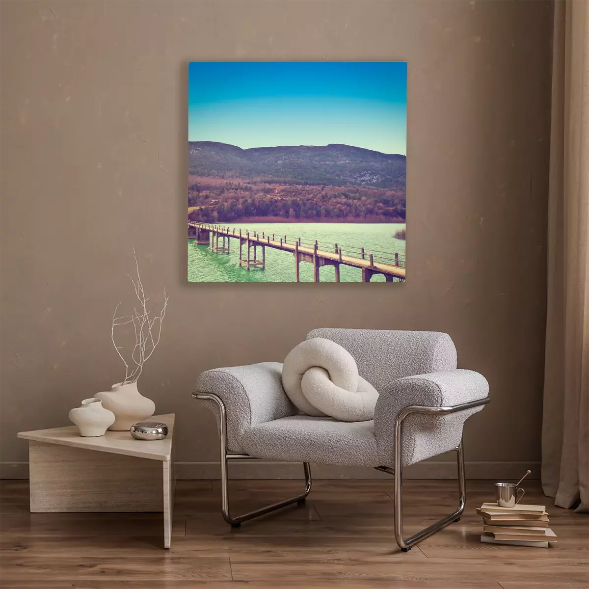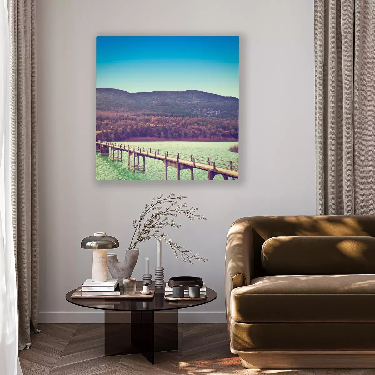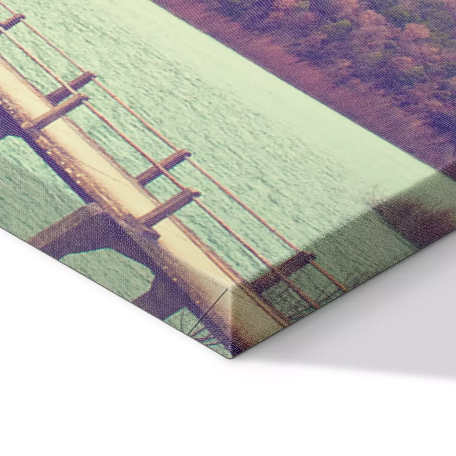 De print wordt aangebracht op hoogwaardig canvas dat op een schildersweefgetouw (spieraam) wordt gespannen. Omdat de print de zijranden bedekt, hoeft het ontwerp niet met een extra kader te worden omlijst. Wij raden ook composities aan die uit meerdere foto's bestaan en zo een coherente compositie vormen.