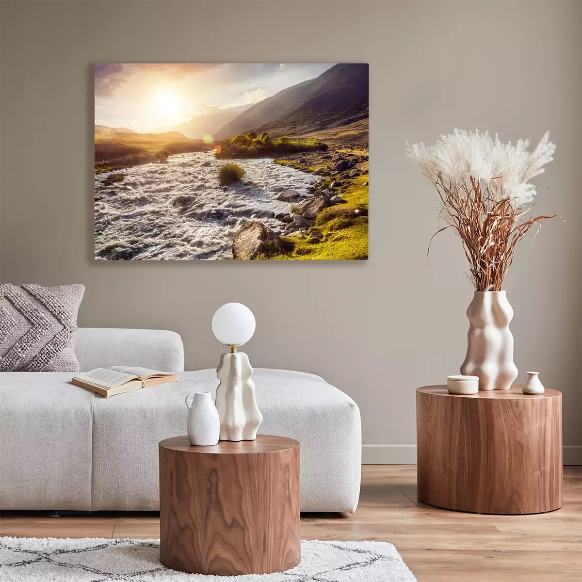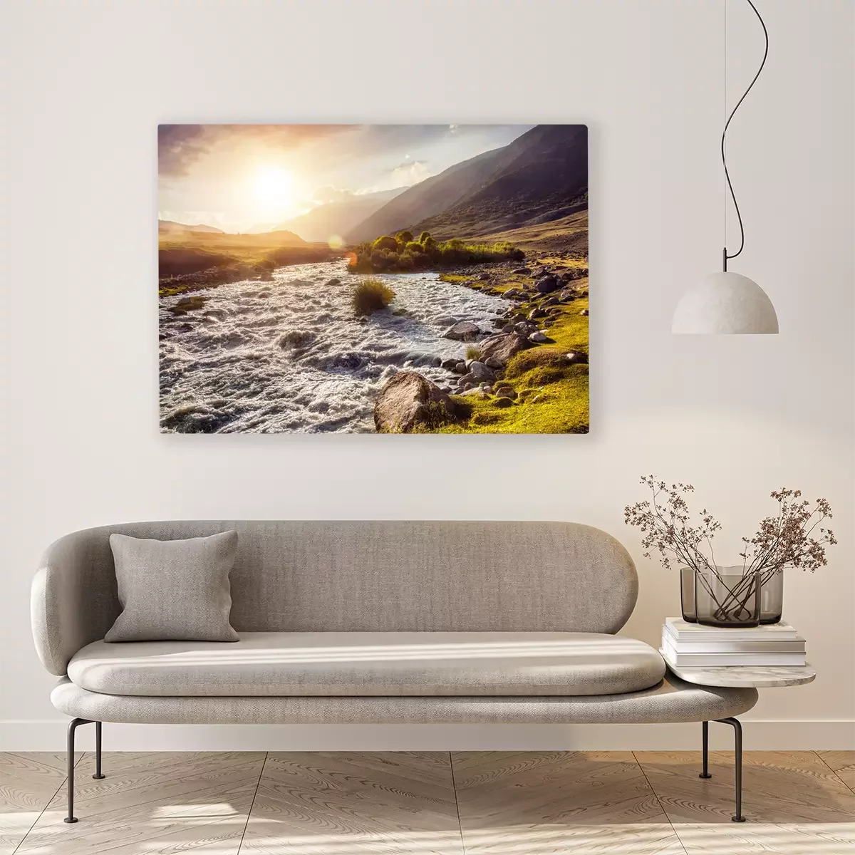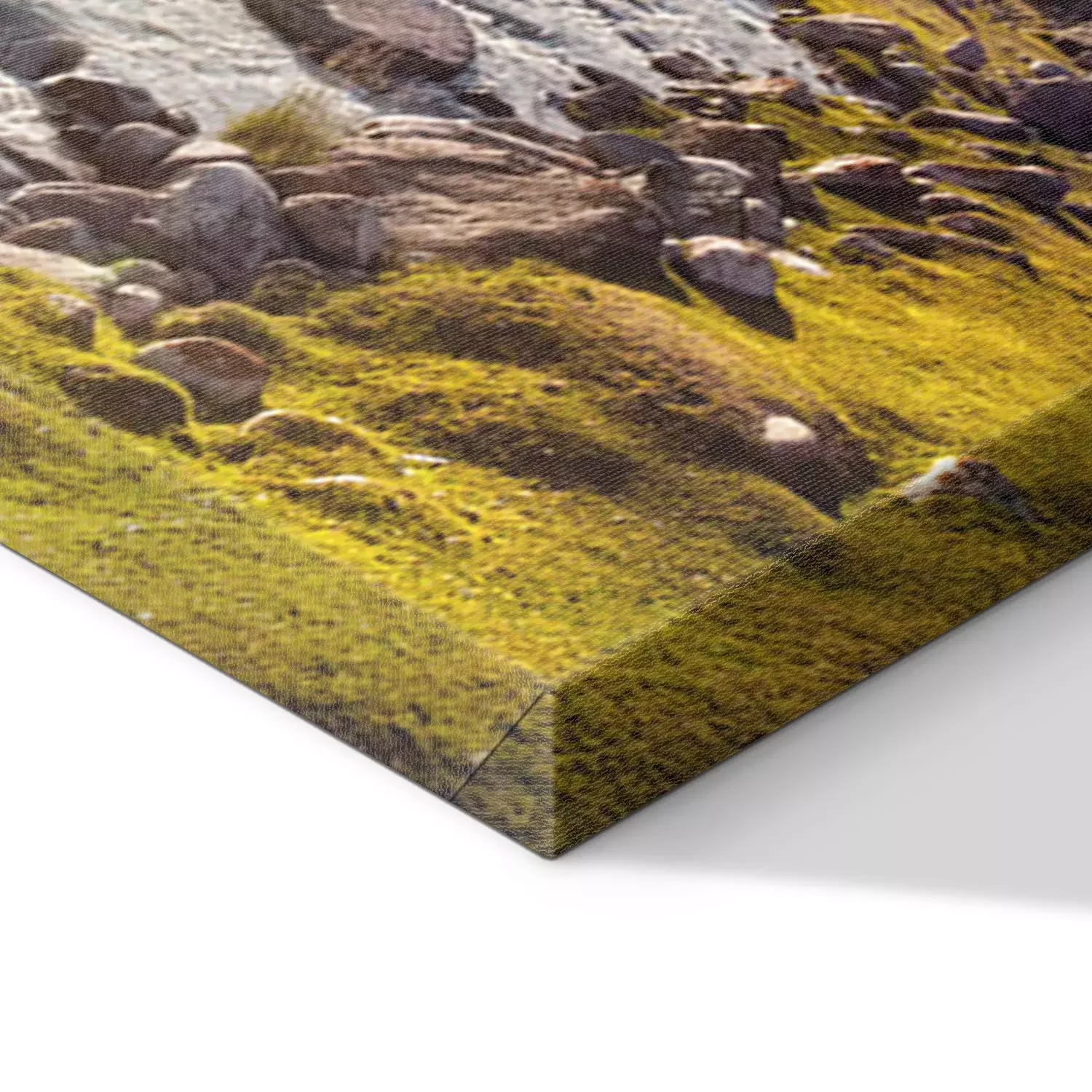 De print wordt aangebracht op hoogwaardig canvas dat op een schildersweefgetouw (spieraam) wordt gespannen. Omdat de print de zijranden bedekt, hoeft het ontwerp niet met een extra kader te worden omlijst. Wij raden ook composities aan die uit meerdere foto's bestaan en zo een coherente compositie vormen.