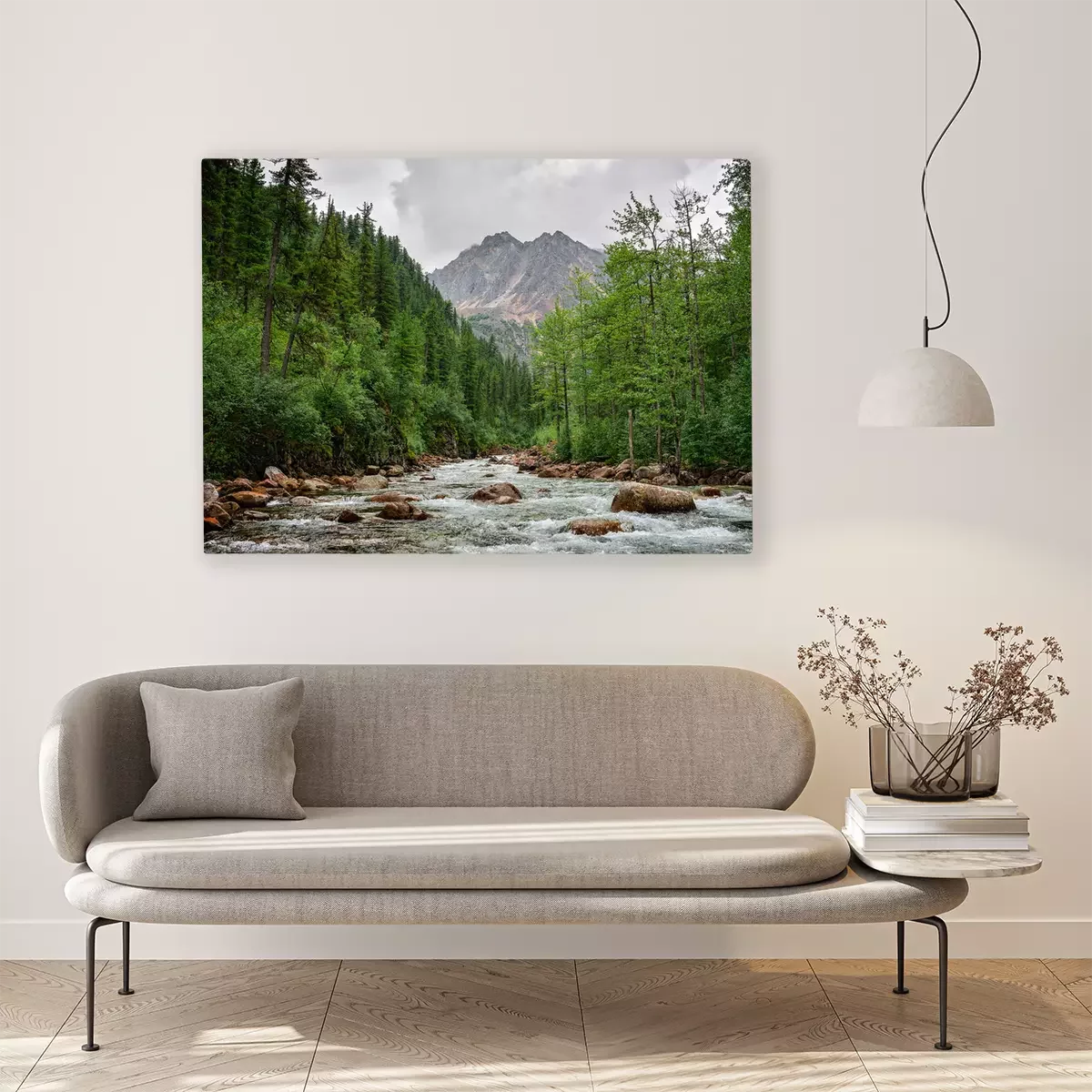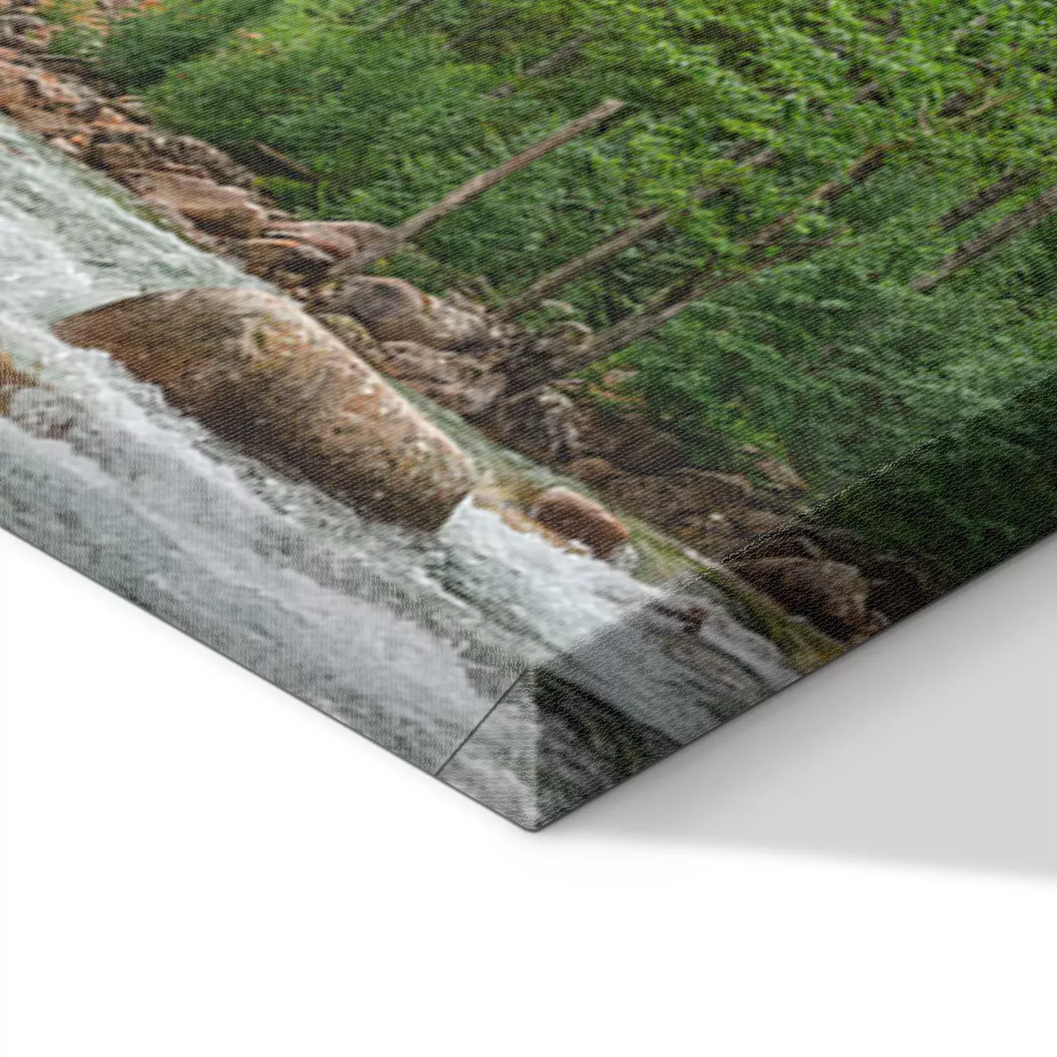 De print wordt aangebracht op hoogwaardig canvas dat op een schildersweefgetouw (spieraam) wordt gespannen. Omdat de print de zijranden bedekt, hoeft het ontwerp niet met een extra kader te worden omlijst. Wij raden ook composities aan die uit meerdere foto's bestaan en zo een coherente compositie vormen.