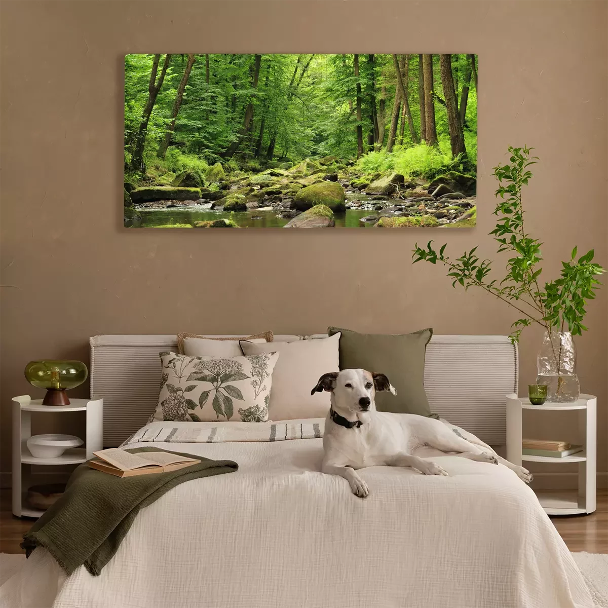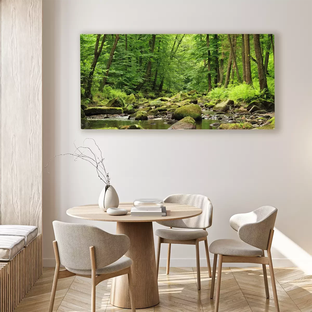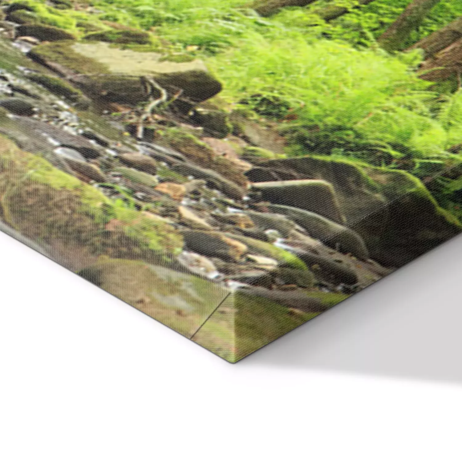 De print wordt aangebracht op hoogwaardig canvas dat op een schildersweefgetouw (spieraam) wordt gespannen. Omdat de print de zijranden bedekt, hoeft het ontwerp niet met een extra kader te worden omlijst. Wij raden ook composities aan die uit meerdere foto's bestaan en zo een coherente compositie vormen.