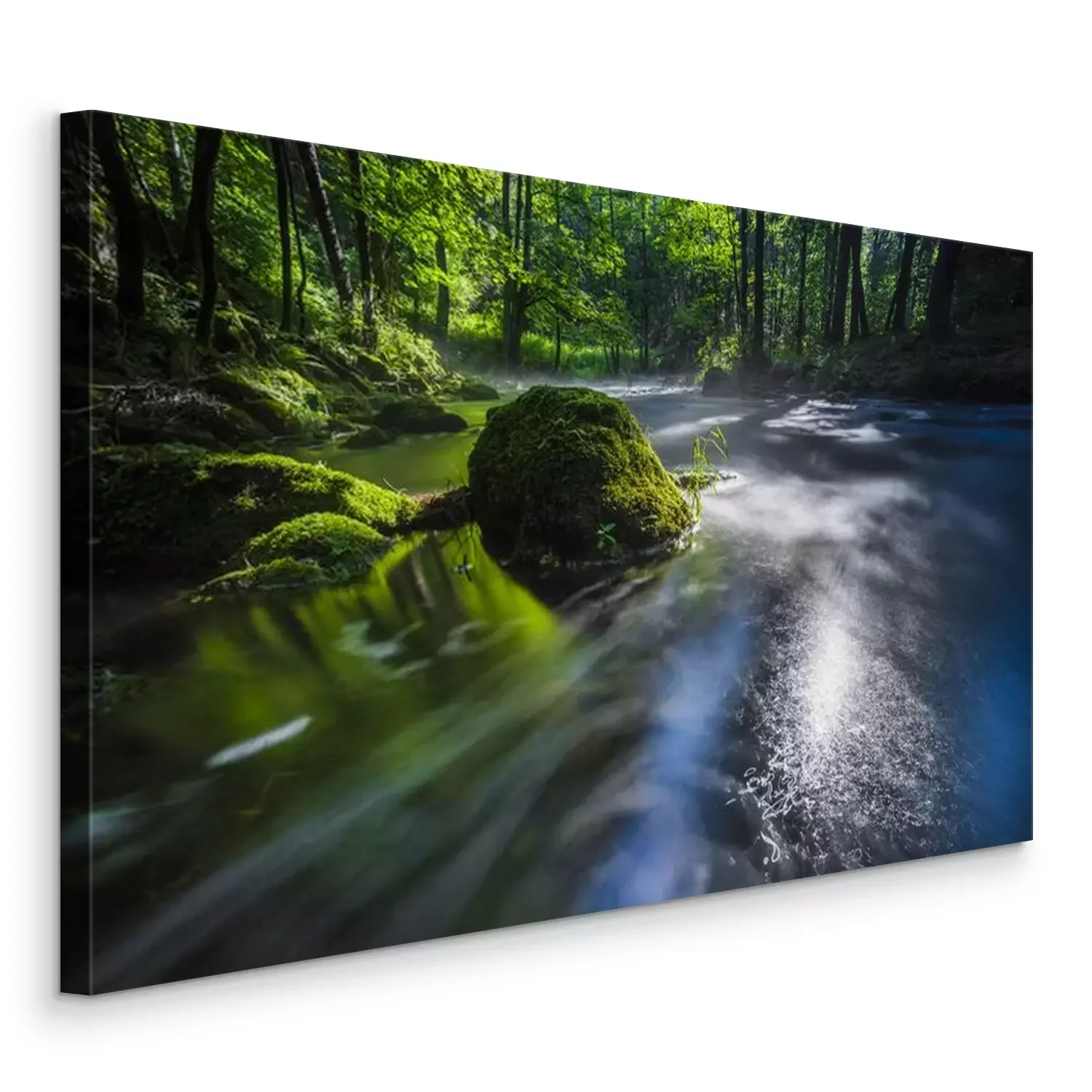 Canvas: Rivier met terugtrekkende mist en lichtreflecties in lange blootstelling