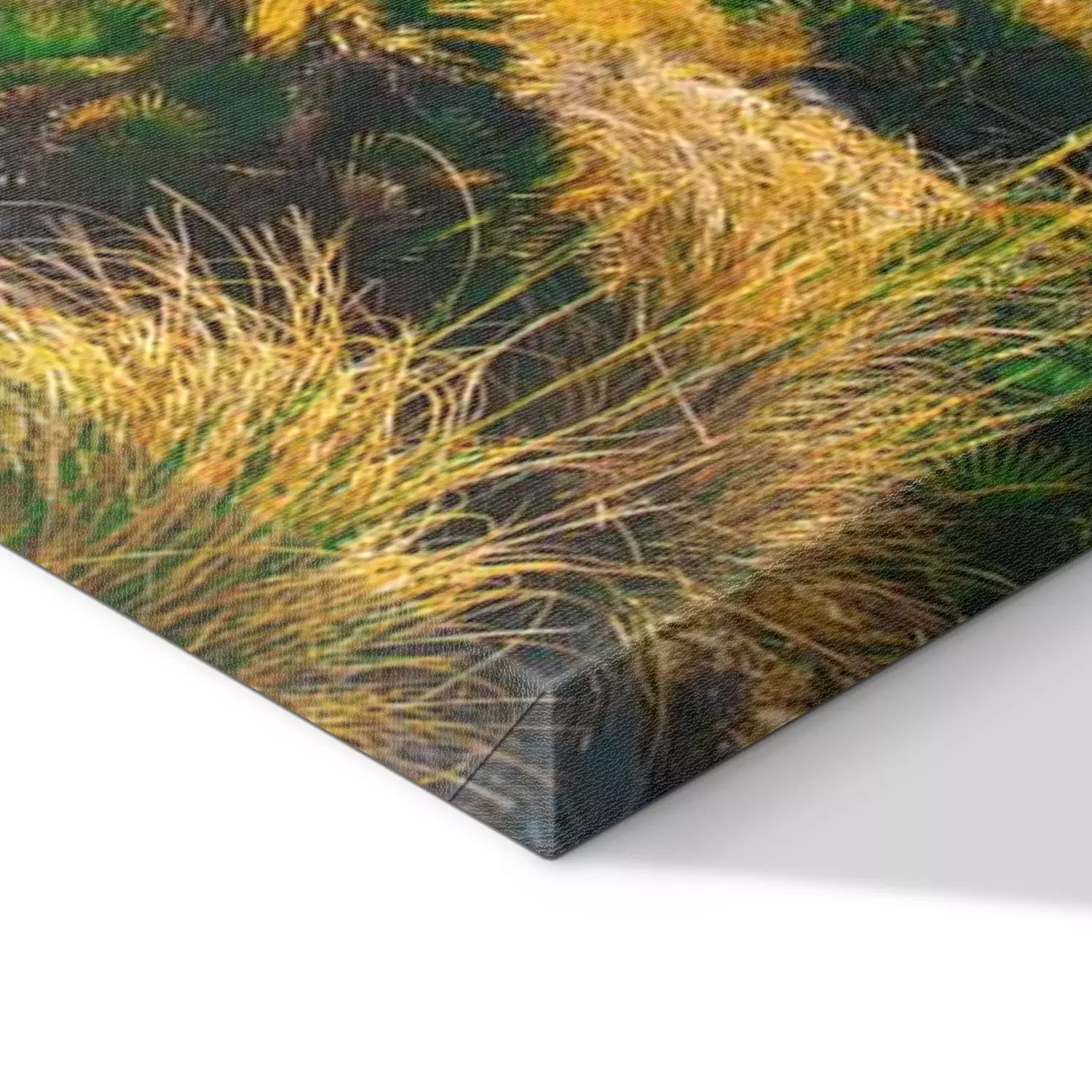 De print wordt aangebracht op hoogwaardig canvas dat op een schildersweefgetouw (spieraam) wordt gespannen. Omdat de print de zijranden bedekt, hoeft het ontwerp niet met een extra kader te worden omlijst. Wij raden ook composities aan die uit meerdere foto's bestaan en zo een coherente compositie vormen.