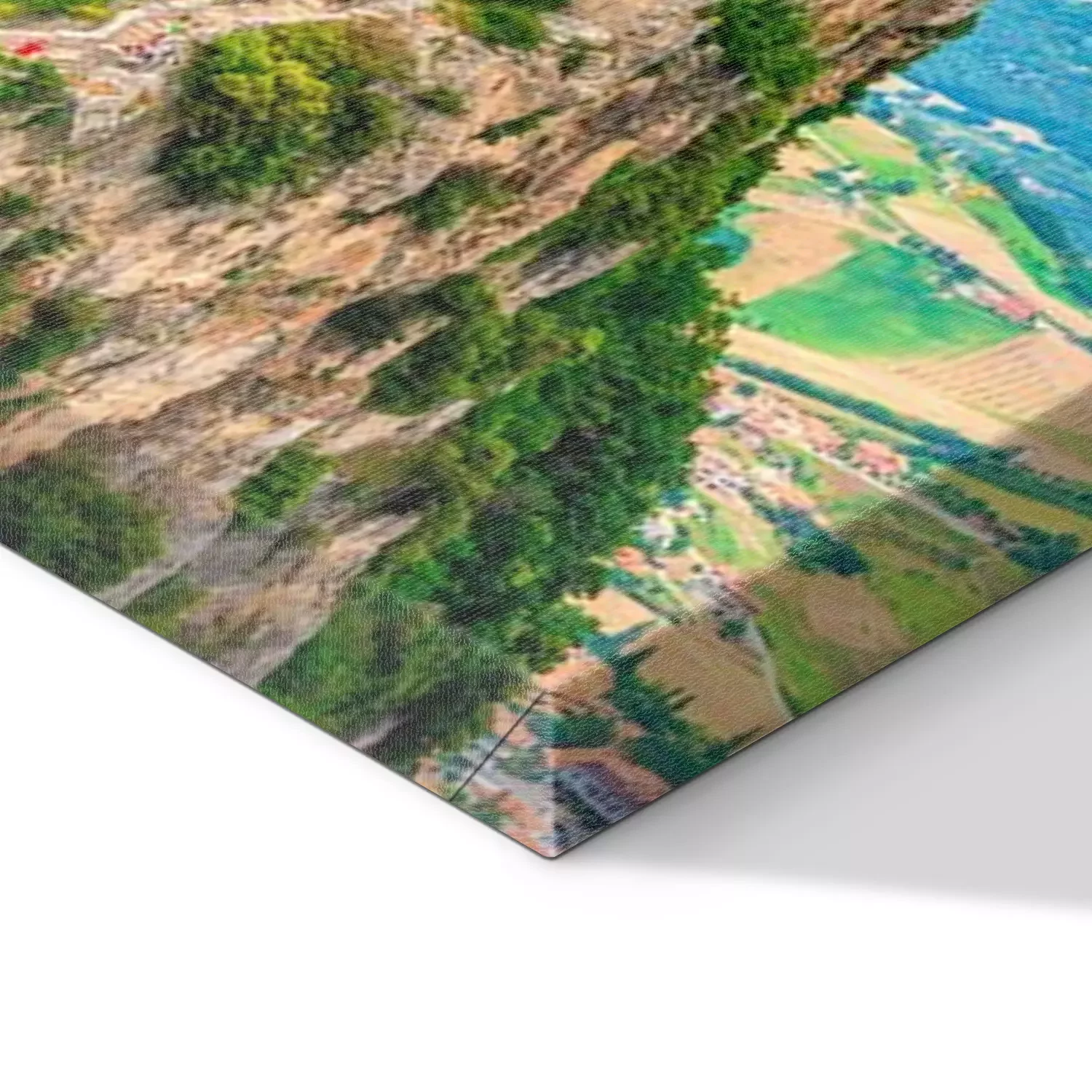 De print wordt aangebracht op hoogwaardig canvas dat op een schildersweefgetouw (spieraam) wordt gespannen. Omdat de print de zijranden bedekt, hoeft het ontwerp niet met een extra kader te worden omlijst. Wij raden ook composities aan die uit meerdere foto's bestaan en zo een coherente compositie vormen.