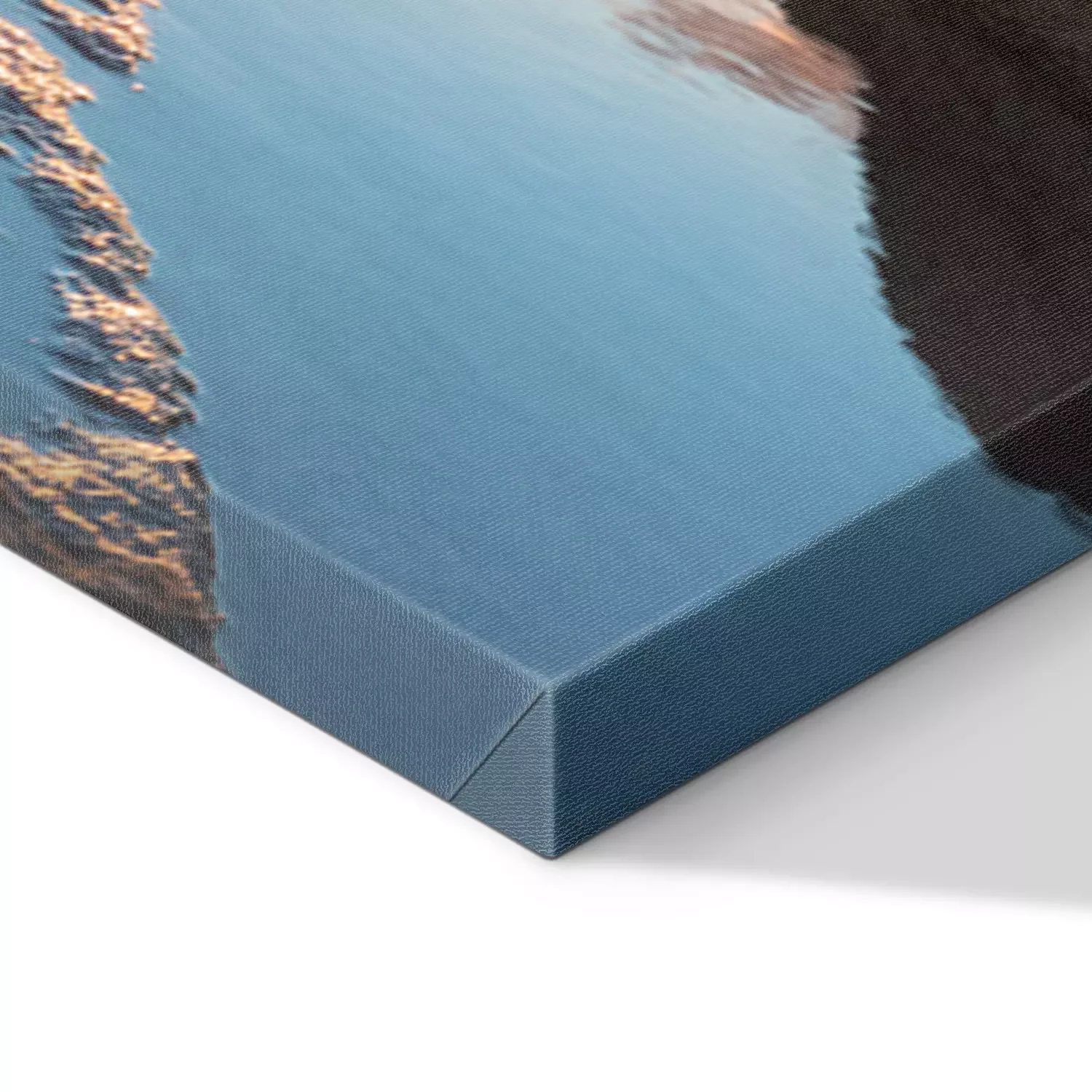 De print wordt aangebracht op hoogwaardig canvas dat op een schildersweefgetouw (spieraam) wordt gespannen. Omdat de print de zijranden bedekt, hoeft het ontwerp niet met een extra kader te worden omlijst. Wij raden ook composities aan die uit meerdere foto's bestaan en zo een coherente compositie vormen.