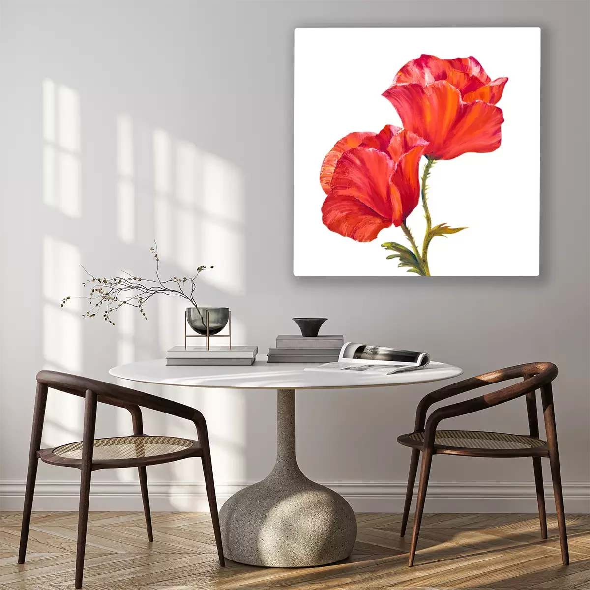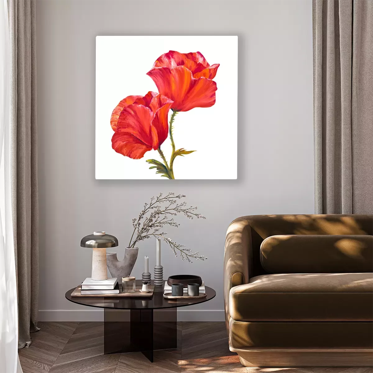 Canvas: Rode bloemen op een lichte achtergrond