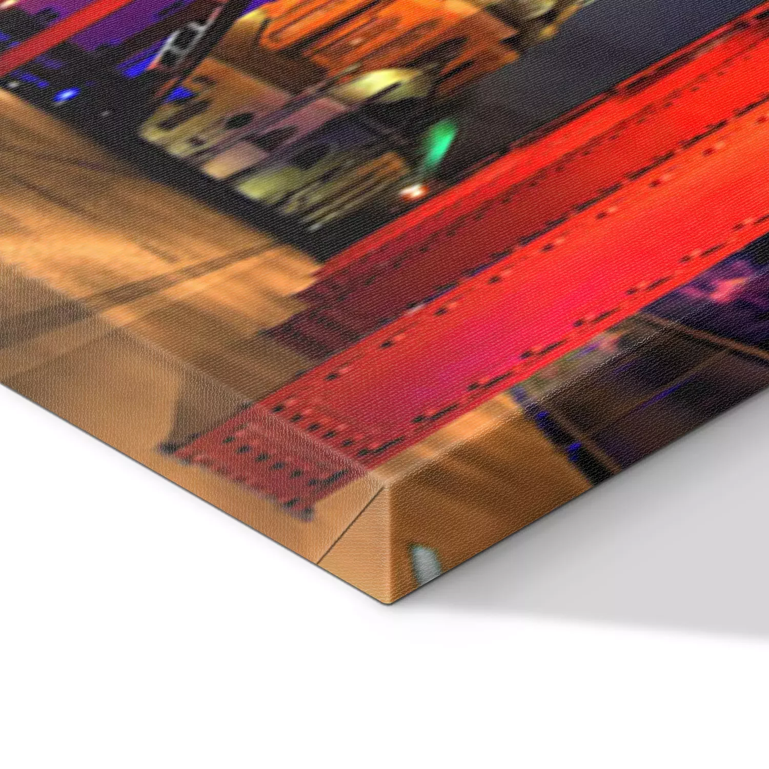 De print wordt aangebracht op hoogwaardig canvas dat op een schildersweefgetouw (spieraam) wordt gespannen. Omdat de print de zijranden bedekt, hoeft het ontwerp niet met een extra kader te worden omlijst. Wij raden ook composities aan die uit meerdere foto's bestaan en zo een coherente compositie vormen.
