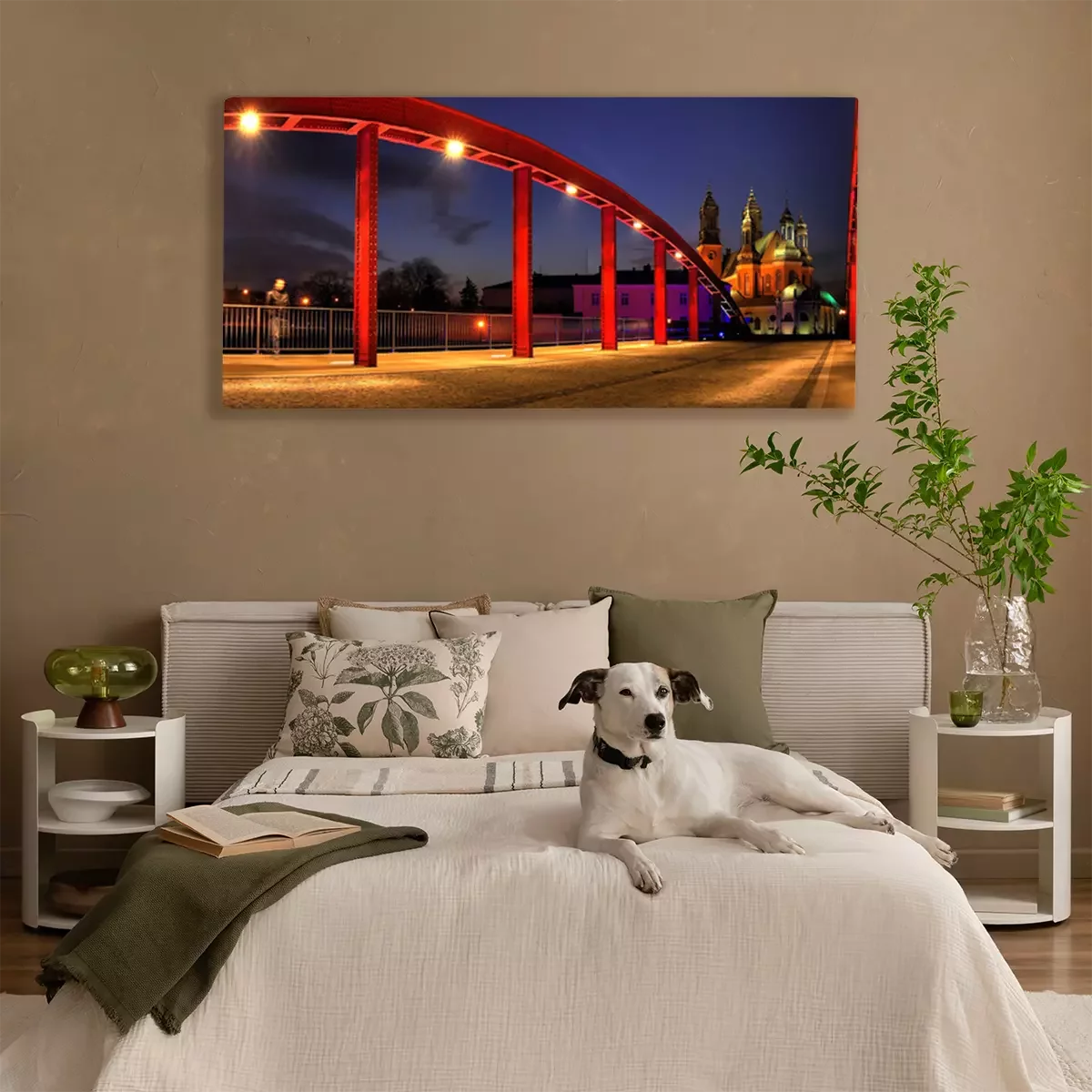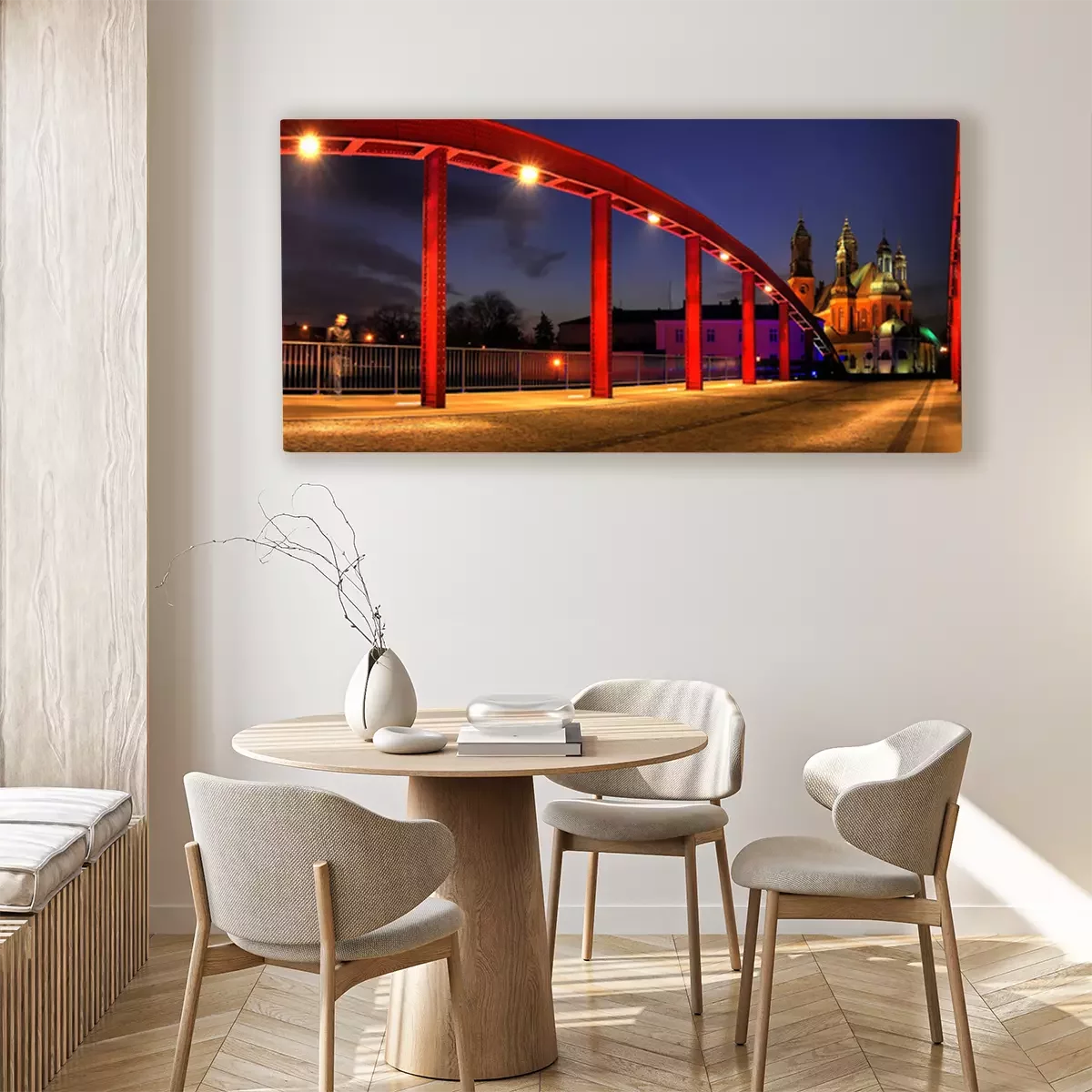 Canvas: Rode brug en de kathedraal in de nacht