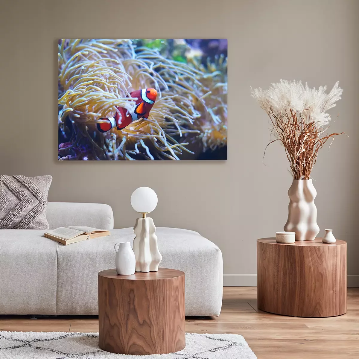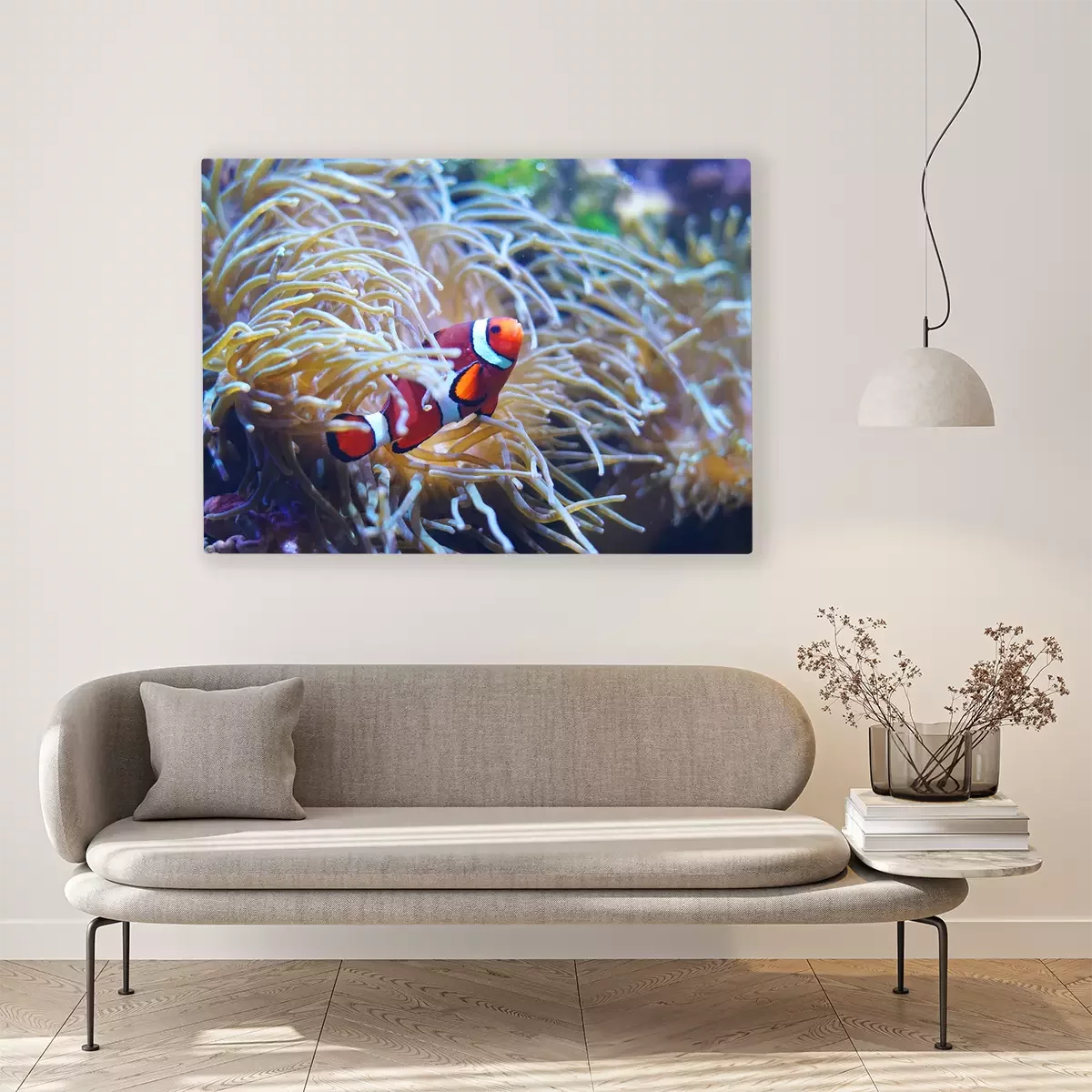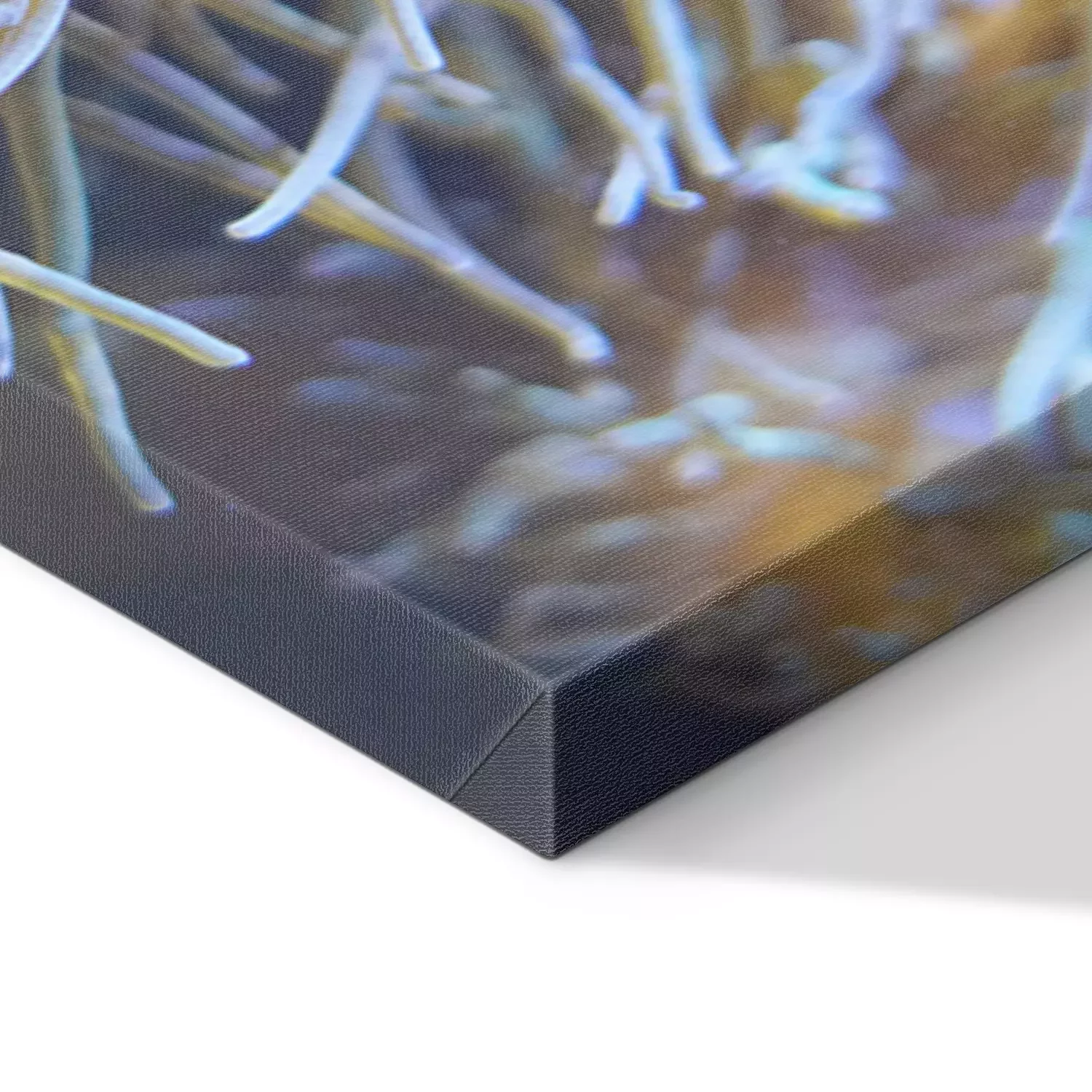 De print wordt aangebracht op hoogwaardig canvas dat op een schildersweefgetouw (spieraam) wordt gespannen. Omdat de print de zijranden bedekt, hoeft het ontwerp niet met een extra kader te worden omlijst. Wij raden ook composities aan die uit meerdere foto's bestaan en zo een coherente compositie vormen.