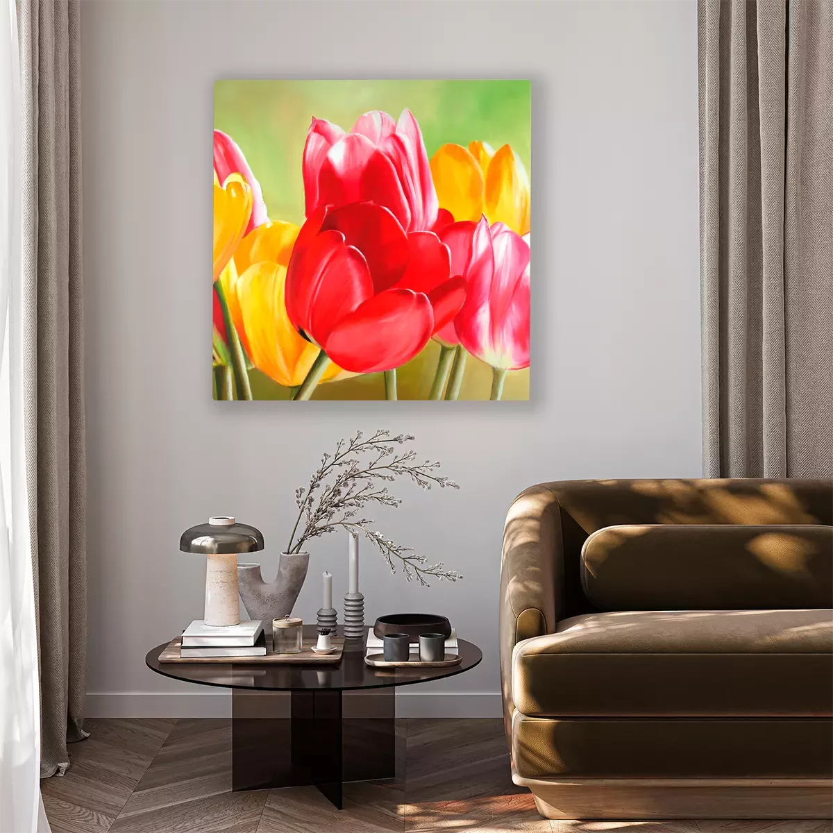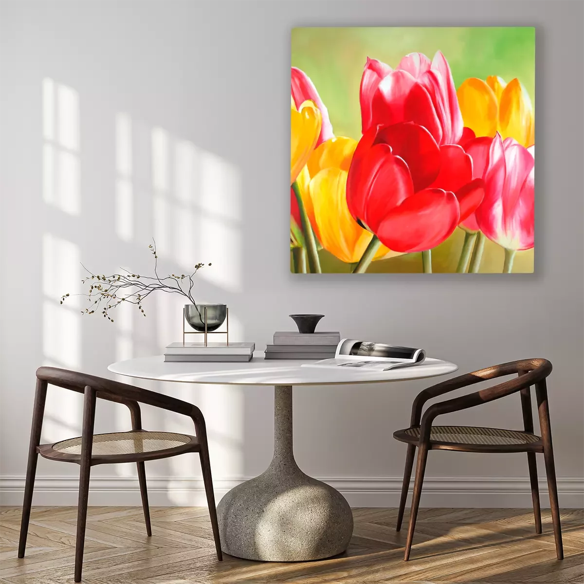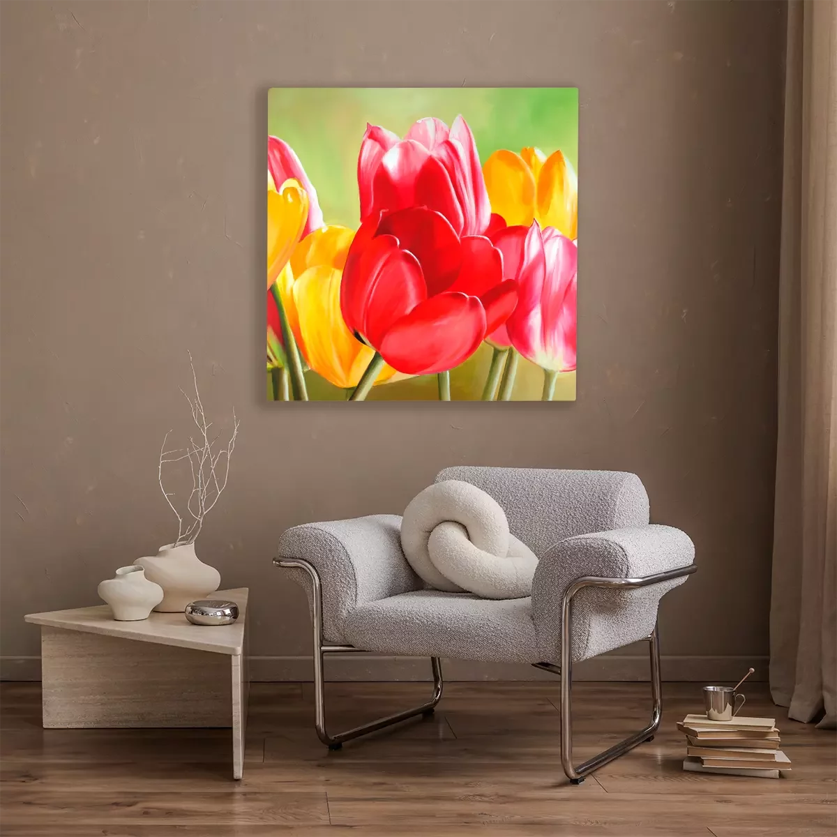 Rode en gele tulpen in sappige kleuren