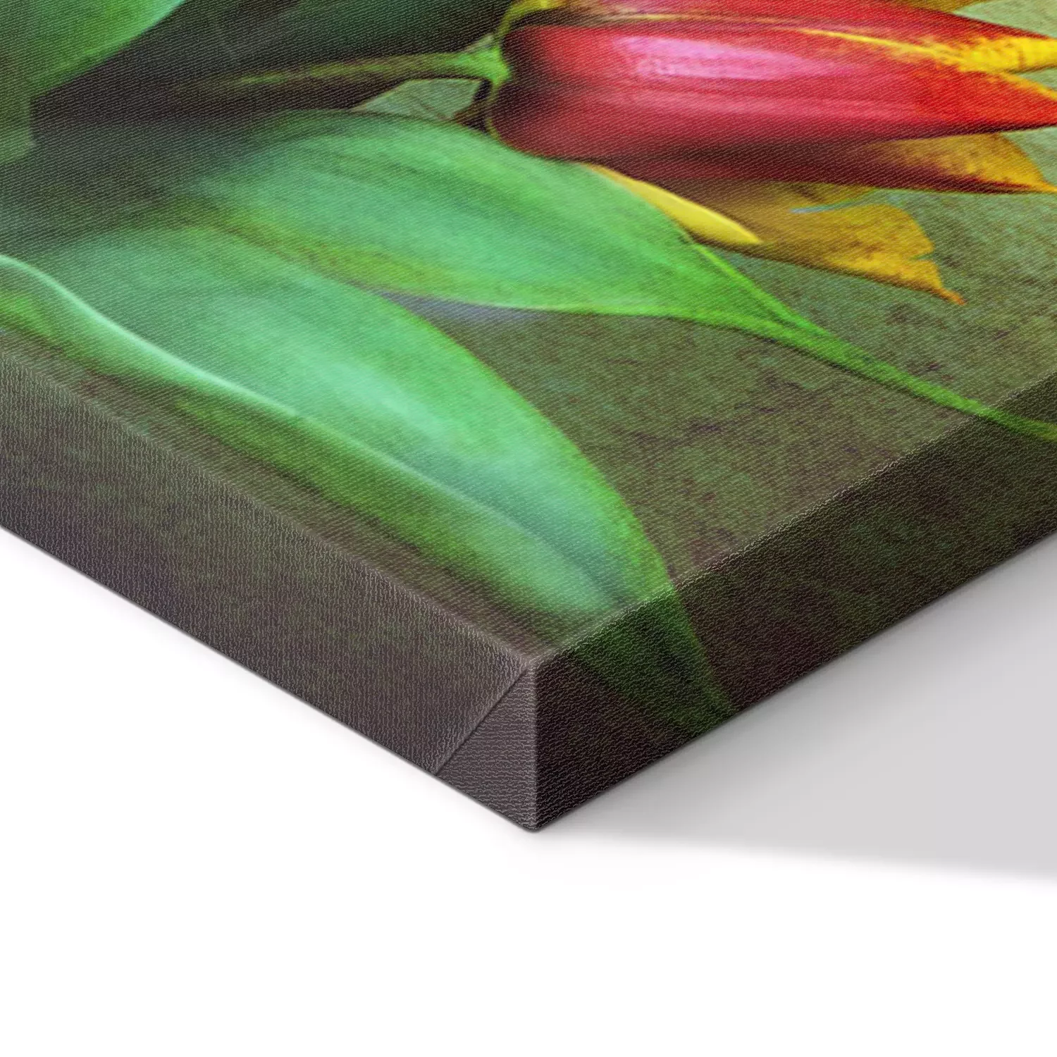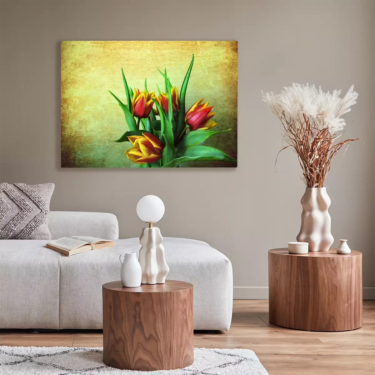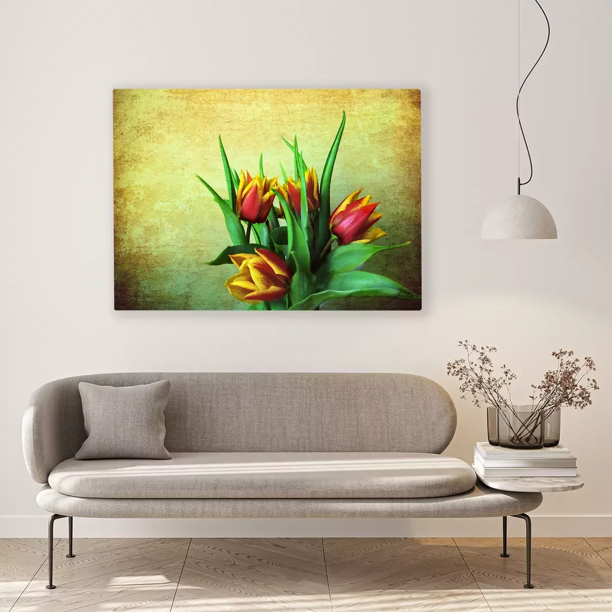 Canvas: Rode en gele tulpen op een grunge achtergrond