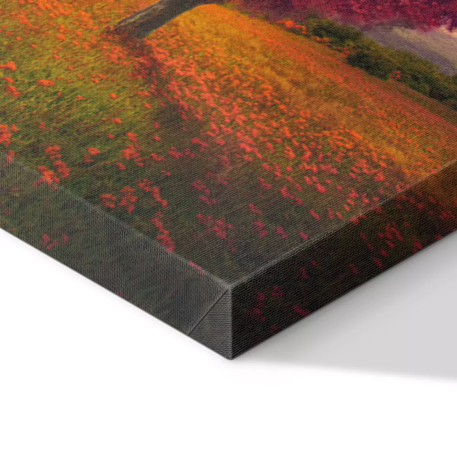 De print wordt aangebracht op hoogwaardig canvas dat op een schildersweefgetouw (spieraam) wordt gespannen. Omdat de print de zijranden bedekt, hoeft het ontwerp niet met een extra kader te worden omlijst. Wij raden ook composities aan die uit meerdere foto's bestaan en zo een coherente compositie vormen.