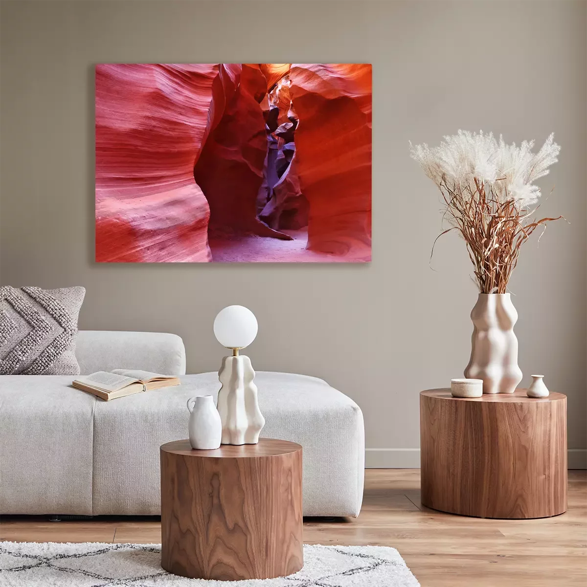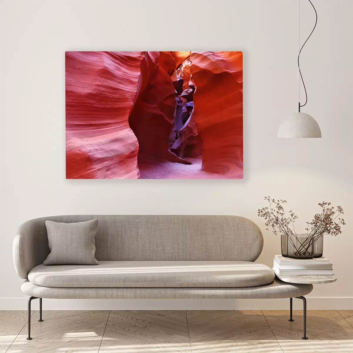 De print wordt aangebracht op hoogwaardig canvas dat op een schildersweefgetouw (spieraam) wordt gespannen. Omdat de print de zijranden bedekt, hoeft het ontwerp niet met een extra kader te worden omlijst. Wij raden ook composities aan die uit meerdere foto's bestaan en zo een coherente compositie vormen.