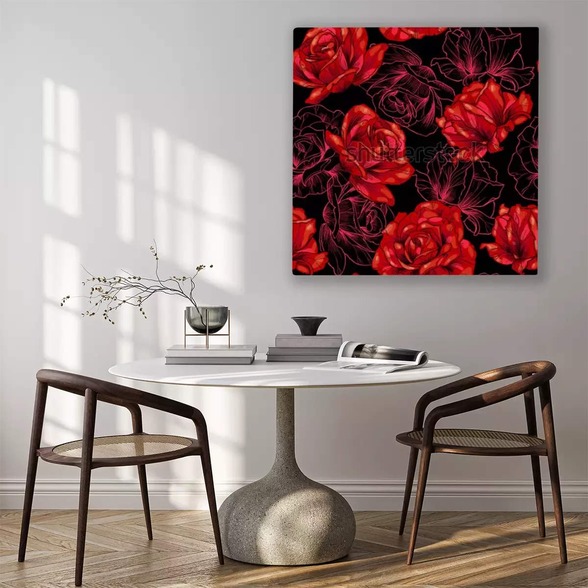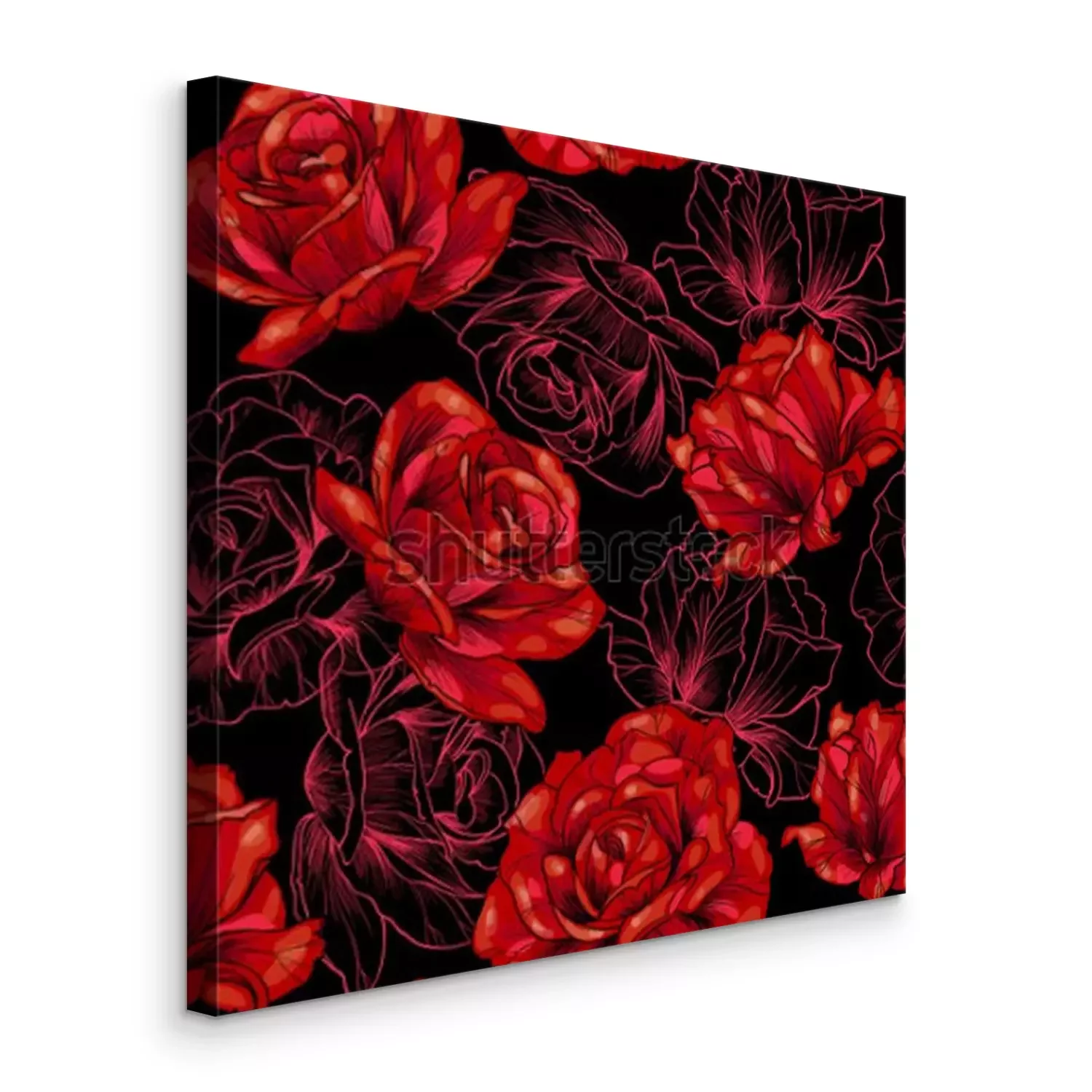 Canvas: Rode rozen op zwarte achtergrond. Vector naadloos patroon