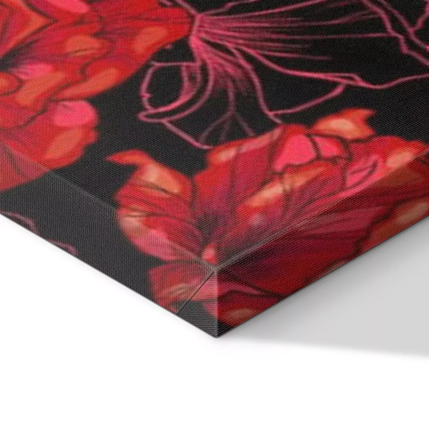De print wordt aangebracht op hoogwaardig canvas dat op een schildersweefgetouw (spieraam) wordt gespannen. Omdat de print de zijranden bedekt, hoeft het ontwerp niet met een extra kader te worden omlijst. Wij raden ook composities aan die uit meerdere foto's bestaan en zo een coherente compositie vormen.
