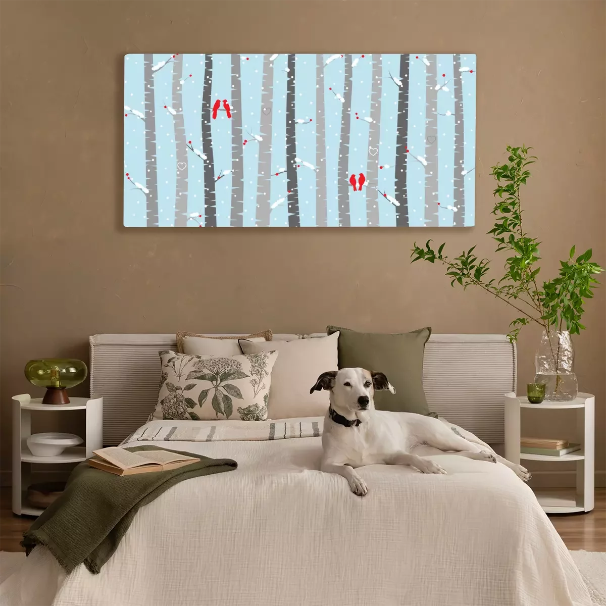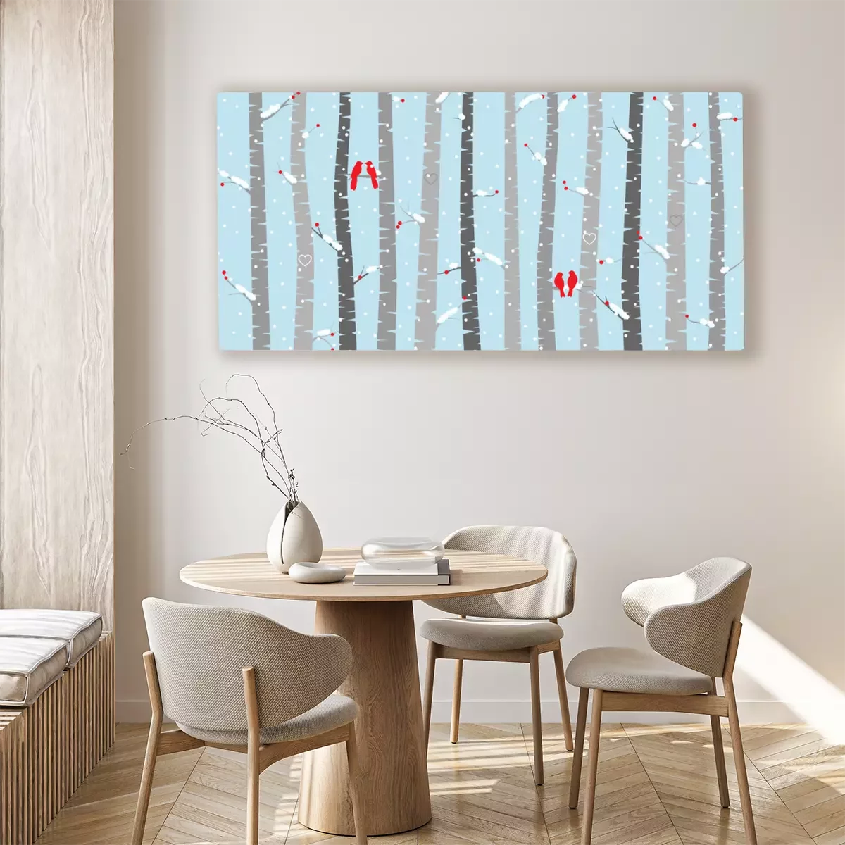 Grafische berken met vogels