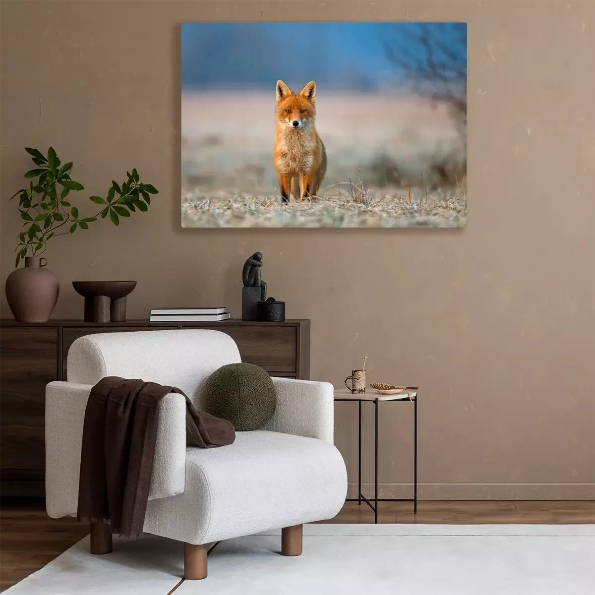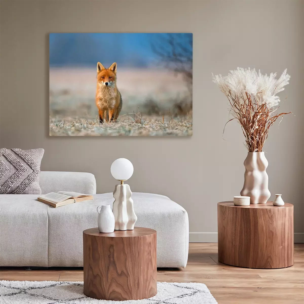 De print wordt aangebracht op hoogwaardig canvas dat op een schildersweefgetouw (spieraam) wordt gespannen. Omdat de print de zijranden bedekt, hoeft het ontwerp niet met een extra kader te worden omlijst. Wij raden ook composities aan die uit meerdere foto's bestaan en zo een coherente compositie vormen.