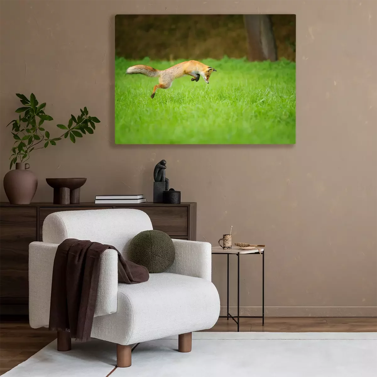 Canvas: Rode vos op jacht, mousing op grasgebied