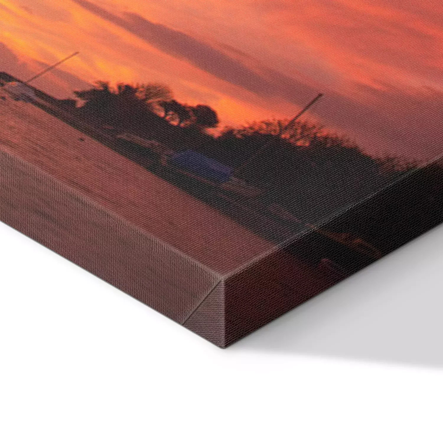 De print wordt aangebracht op hoogwaardig canvas dat op een schildersweefgetouw (spieraam) wordt gespannen. Omdat de print de zijranden bedekt, hoeft het ontwerp niet met een extra kader te worden omlijst. Wij raden ook composities aan die uit meerdere foto's bestaan en zo een coherente compositie vormen.