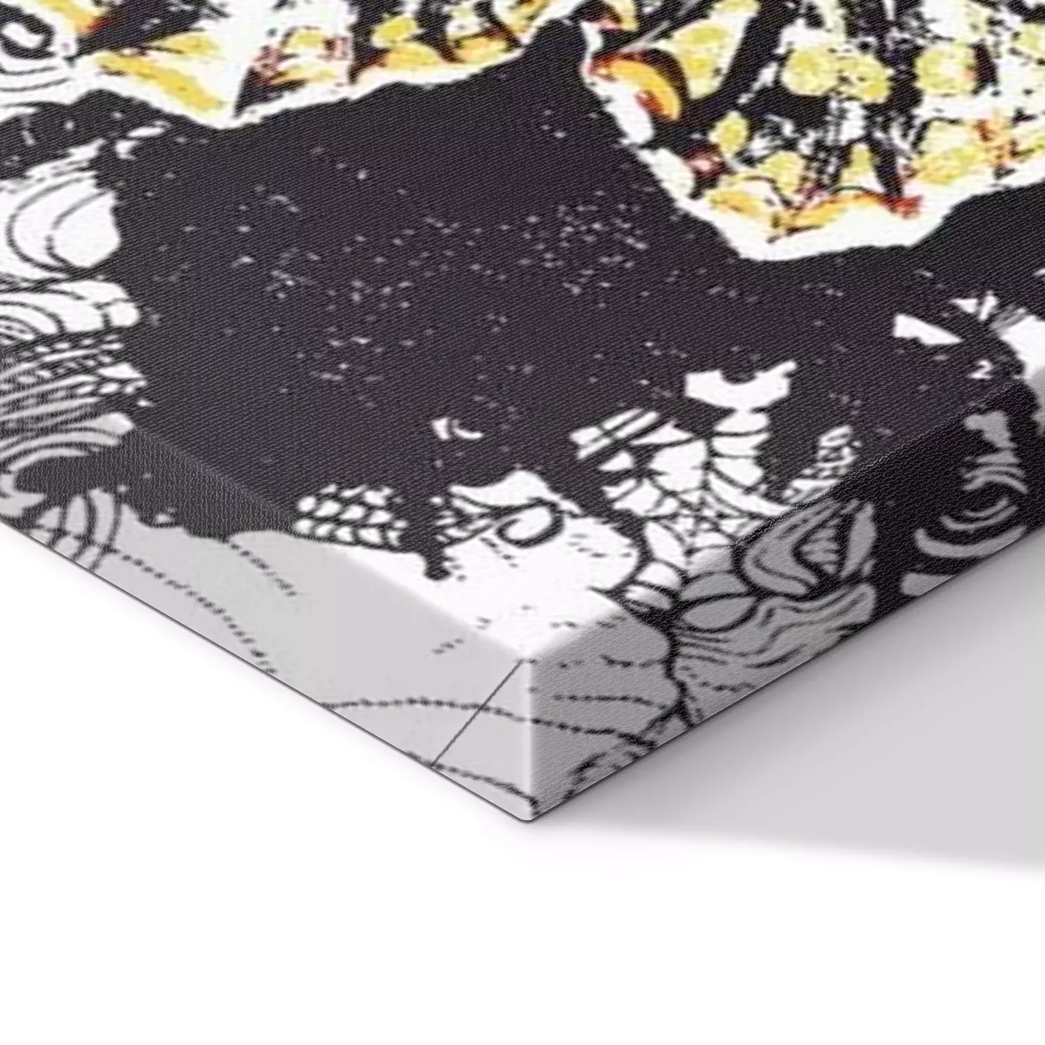 De print wordt aangebracht op hoogwaardig canvas dat op een schildersweefgetouw (spieraam) wordt gespannen. Omdat de print de zijranden bedekt, hoeft het ontwerp niet met een extra kader te worden omlijst. Wij raden ook composities aan die uit meerdere foto's bestaan en zo een coherente compositie vormen.