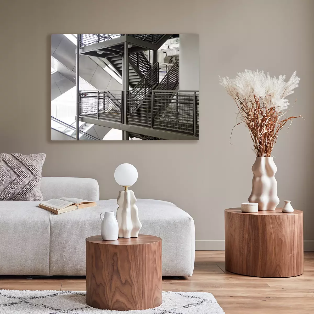 De print wordt aangebracht op hoogwaardig canvas dat op een schildersweefgetouw (spieraam) wordt gespannen. Omdat de print de zijranden bedekt, hoeft het ontwerp niet met een extra kader te worden omlijst. Wij raden ook composities aan die uit meerdere foto's bestaan en zo een coherente compositie vormen.