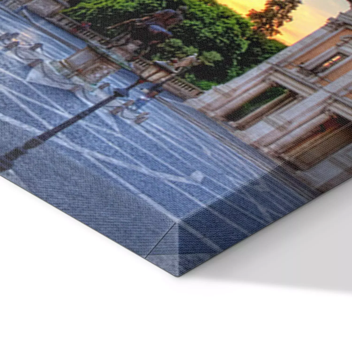 De print wordt aangebracht op hoogwaardig canvas dat op een schildersweefgetouw (spieraam) wordt gespannen. Omdat de print de zijranden bedekt, hoeft het ontwerp niet met een extra kader te worden omlijst. Wij raden ook composities aan die uit meerdere foto's bestaan en zo een coherente compositie vormen.