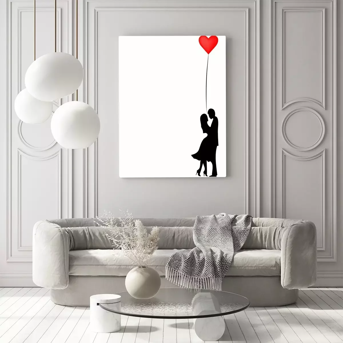 Canvas: Romantisch paar met hartvormige ballon