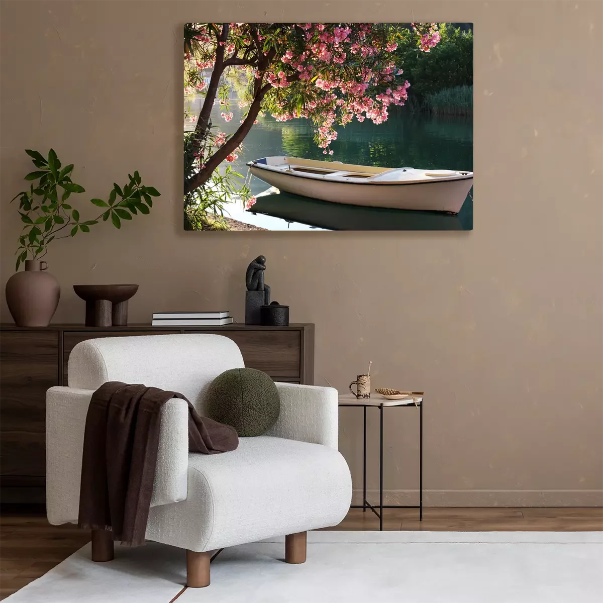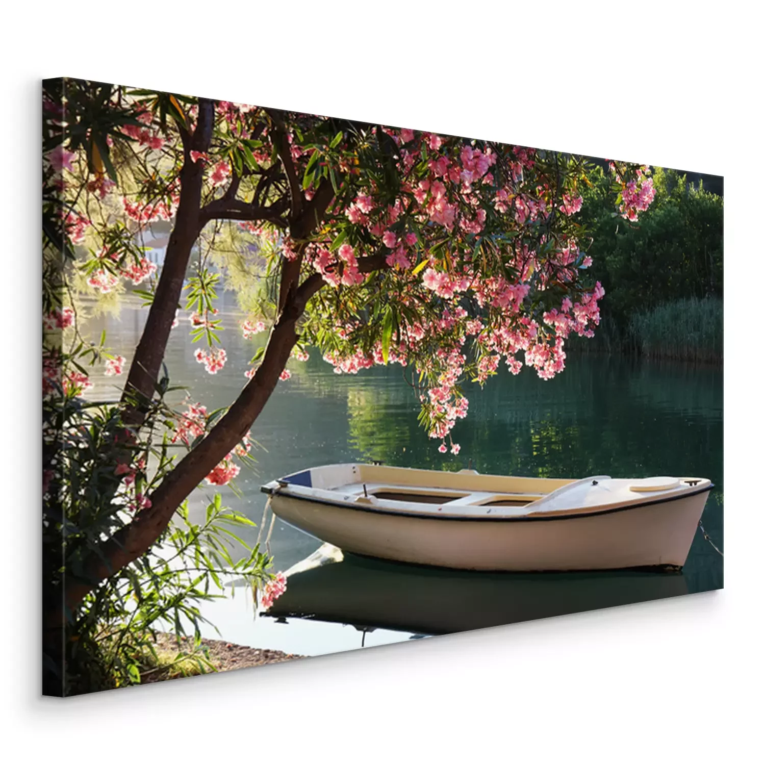 Canvas: Romantische bloeiende boom en boot