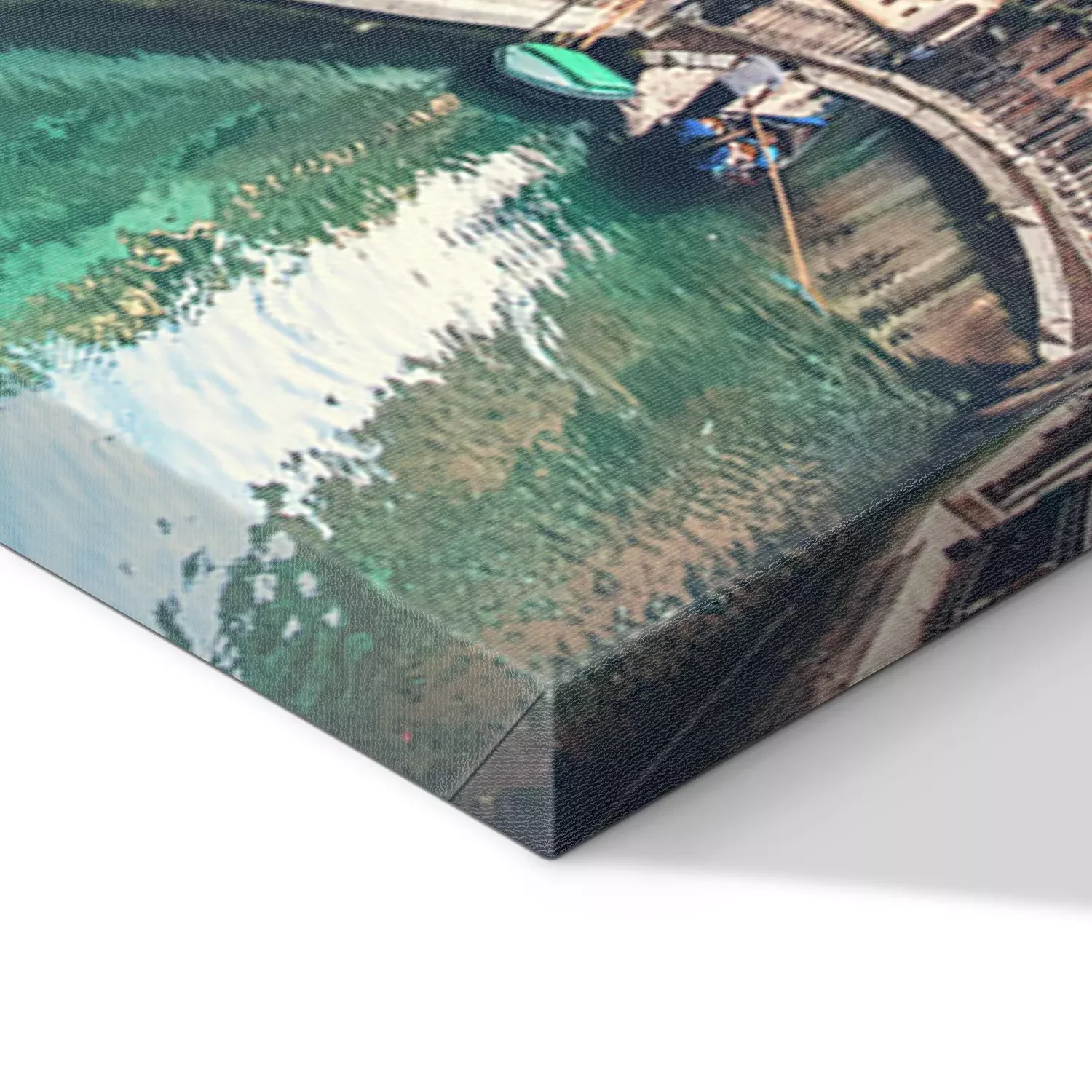De print wordt aangebracht op hoogwaardig canvas dat op een schildersweefgetouw (spieraam) wordt gespannen. Omdat de print de zijranden bedekt, hoeft het ontwerp niet met een extra kader te worden omlijst. Wij raden ook composities aan die uit meerdere foto's bestaan en zo een coherente compositie vormen.