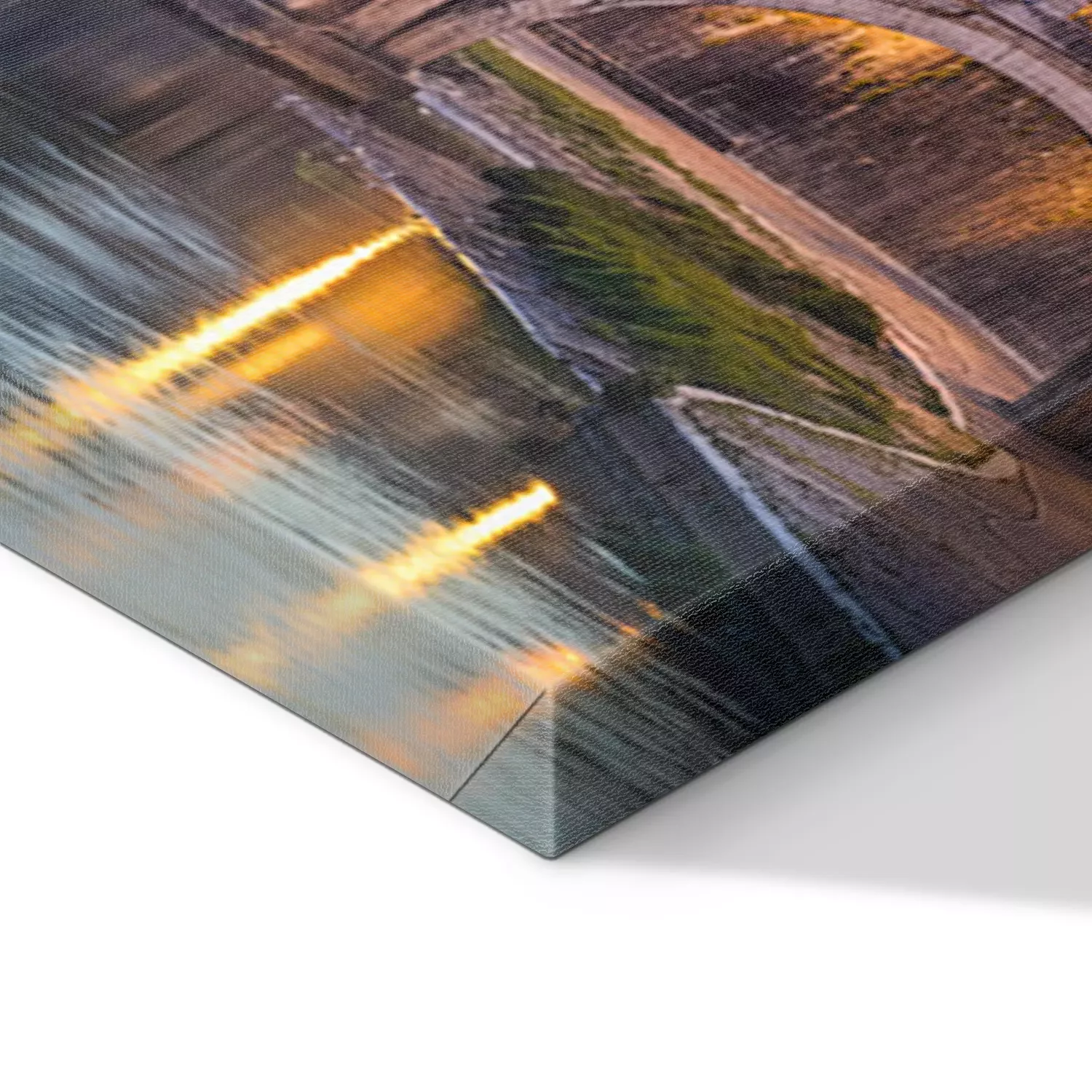 De print wordt aangebracht op hoogwaardig canvas dat op een schildersweefgetouw (spieraam) wordt gespannen. Omdat de print de zijranden bedekt, hoeft het ontwerp niet met een extra kader te worden omlijst. Wij raden ook composities aan die uit meerdere foto's bestaan en zo een coherente compositie vormen.