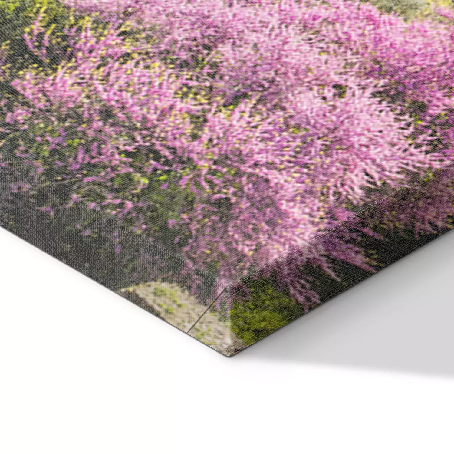 De print wordt aangebracht op hoogwaardig canvas dat op een schildersweefgetouw (spieraam) wordt gespannen. Omdat de print de zijranden bedekt, hoeft het ontwerp niet met een extra kader te worden omlijst. Wij raden ook composities aan die uit meerdere foto's bestaan en zo een coherente compositie vormen.