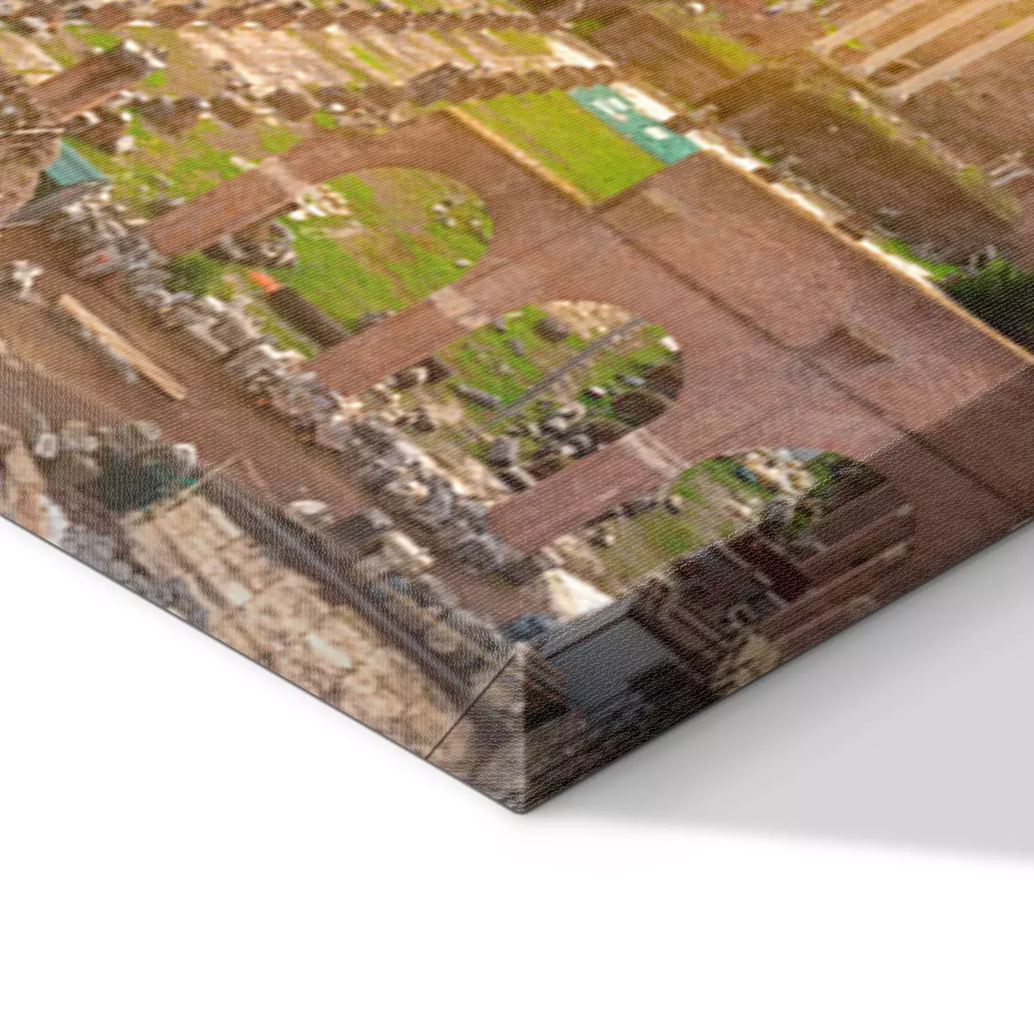 De print wordt aangebracht op hoogwaardig canvas dat op een schildersweefgetouw (spieraam) wordt gespannen. Omdat de print de zijranden bedekt, hoeft het ontwerp niet met een extra kader te worden omlijst. Wij raden ook composities aan die uit meerdere foto's bestaan en zo een coherente compositie vormen.