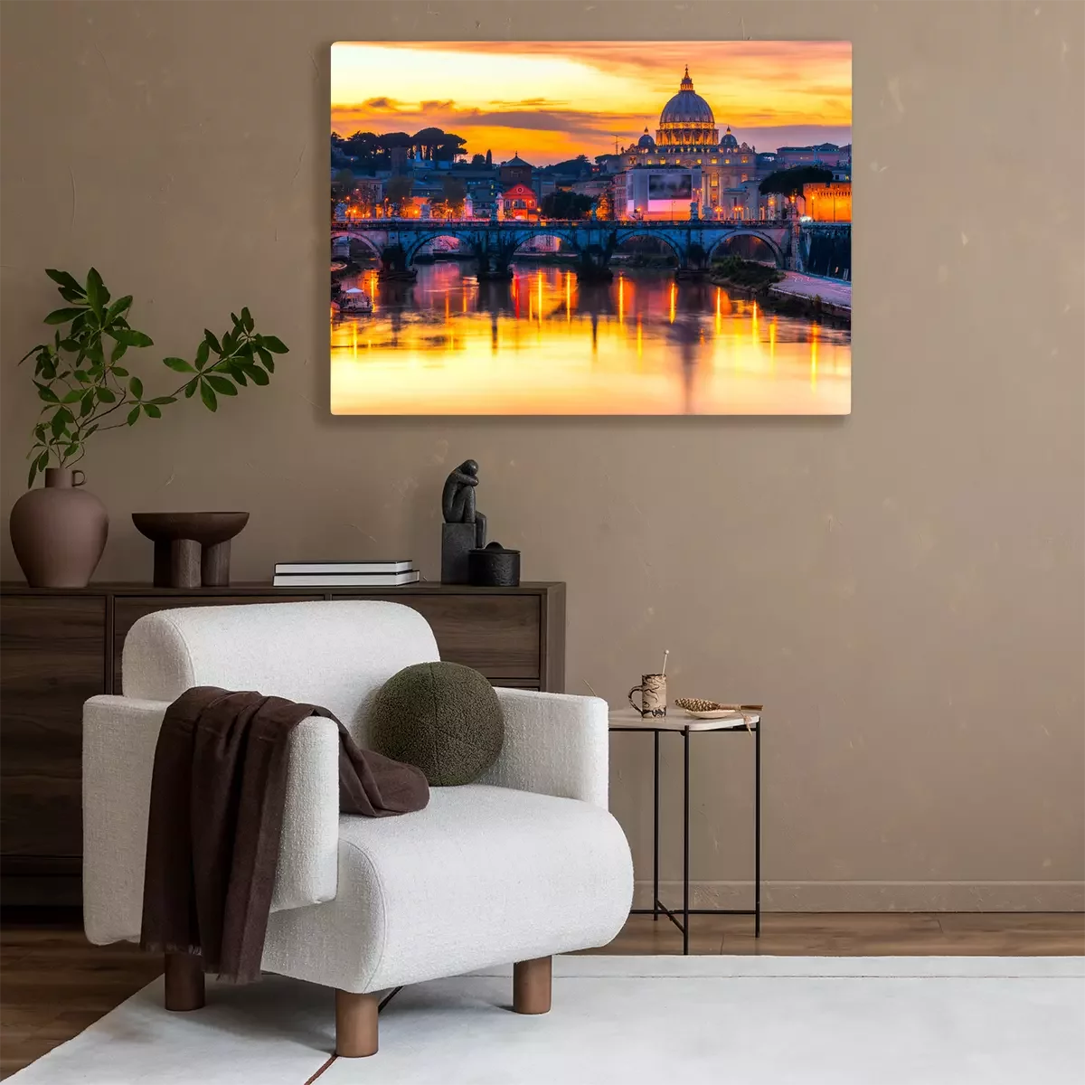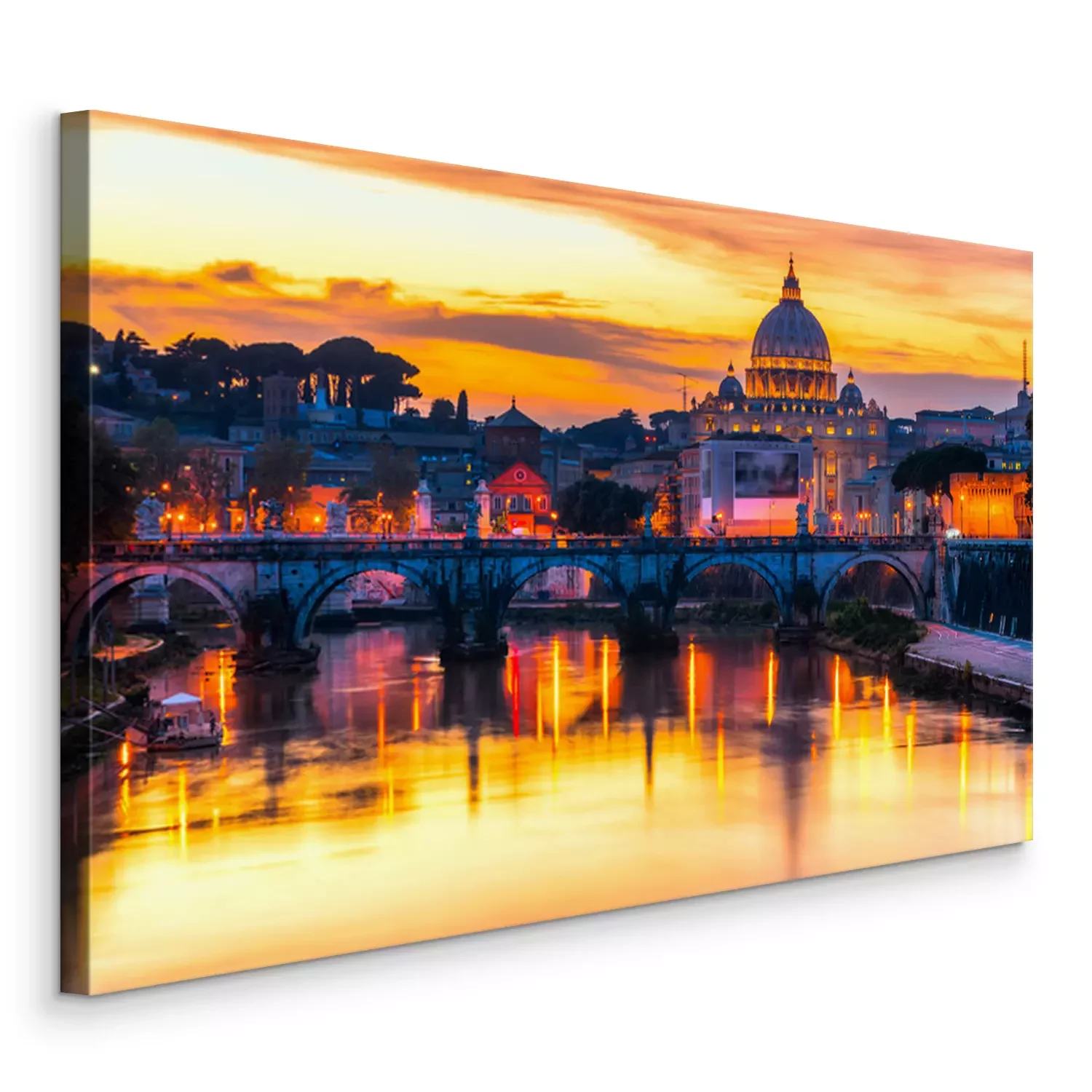 Castel Sant'Angelo en de brug bij zonsondergang, Rome, Italië.