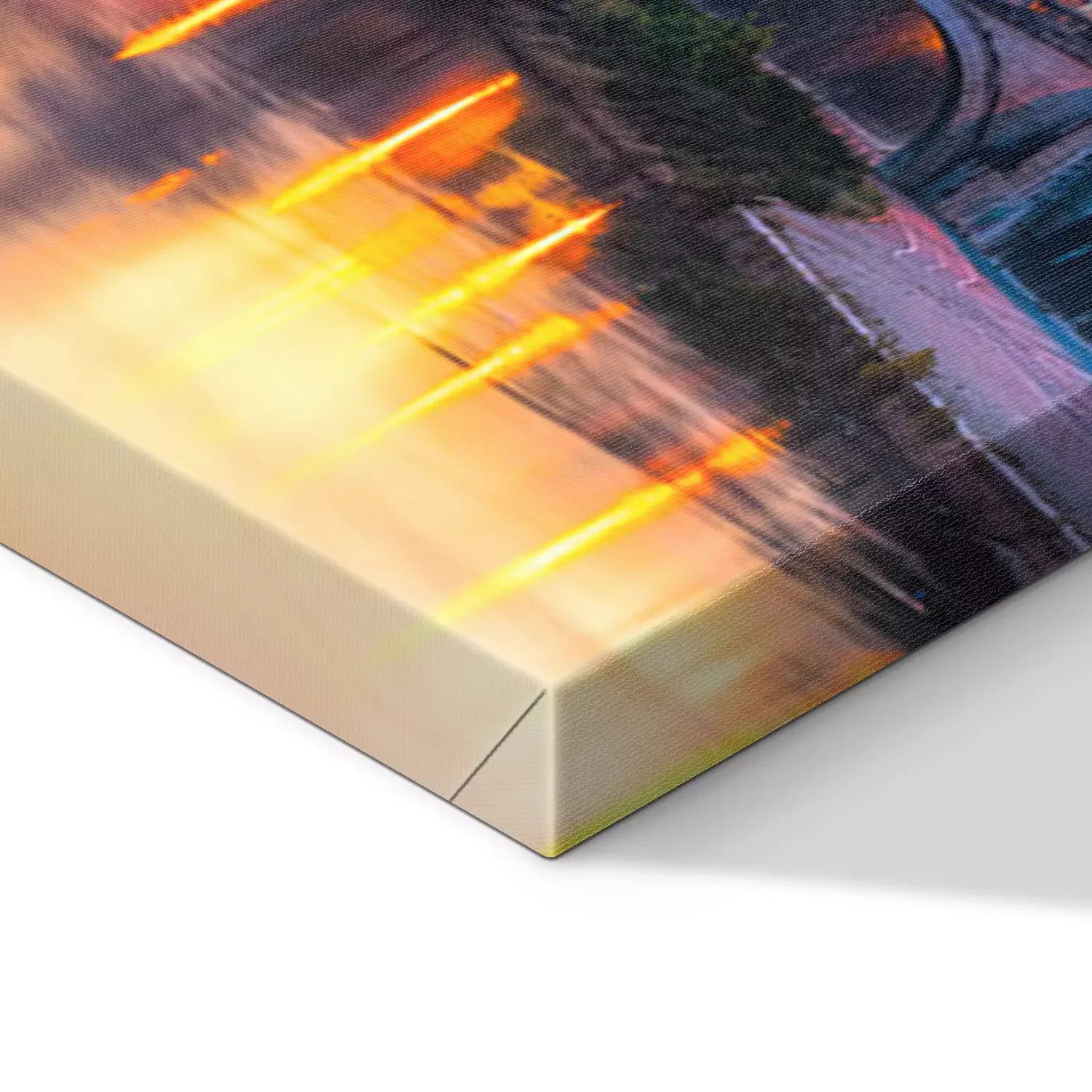 De print wordt aangebracht op hoogwaardig canvas dat op een schildersweefgetouw (spieraam) wordt gespannen. Omdat de print de zijranden bedekt, hoeft het ontwerp niet met een extra kader te worden omlijst. Wij raden ook composities aan die uit meerdere foto's bestaan en zo een coherente compositie vormen.