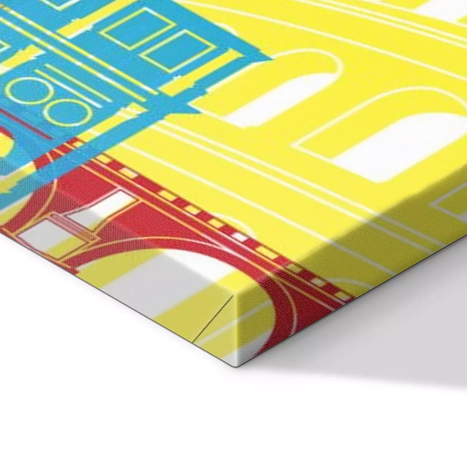 De print wordt aangebracht op hoogwaardig canvas dat op een schildersweefgetouw (spieraam) wordt gespannen. Omdat de print de zijranden bedekt, hoeft het ontwerp niet met een extra kader te worden omlijst. Wij raden ook composities aan die uit meerdere foto's bestaan en zo een coherente compositie vormen.