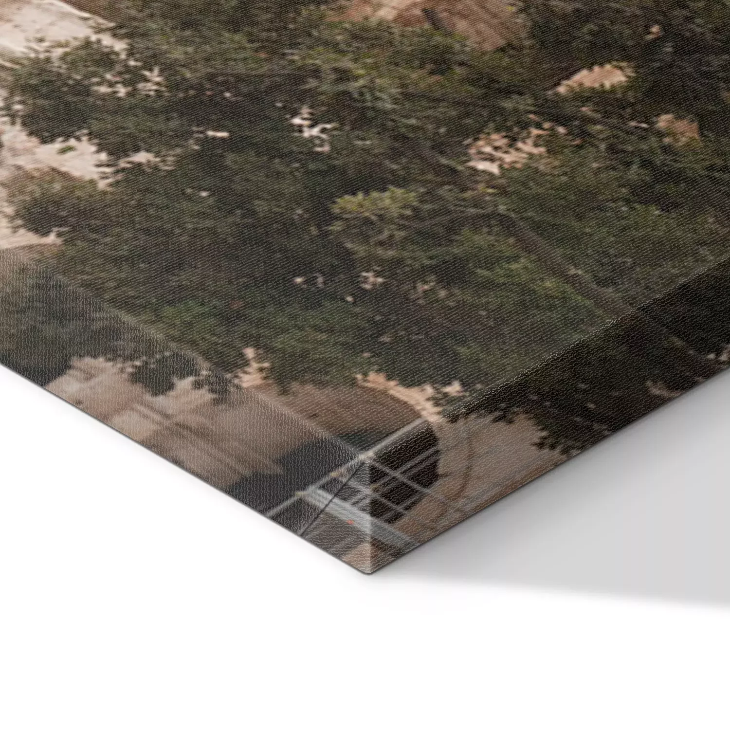 De print wordt aangebracht op hoogwaardig canvas dat op een schildersweefgetouw (spieraam) wordt gespannen. Omdat de print de zijranden bedekt, hoeft het ontwerp niet met een extra kader te worden omlijst. Wij raden ook composities aan die uit meerdere foto's bestaan en zo een coherente compositie vormen.