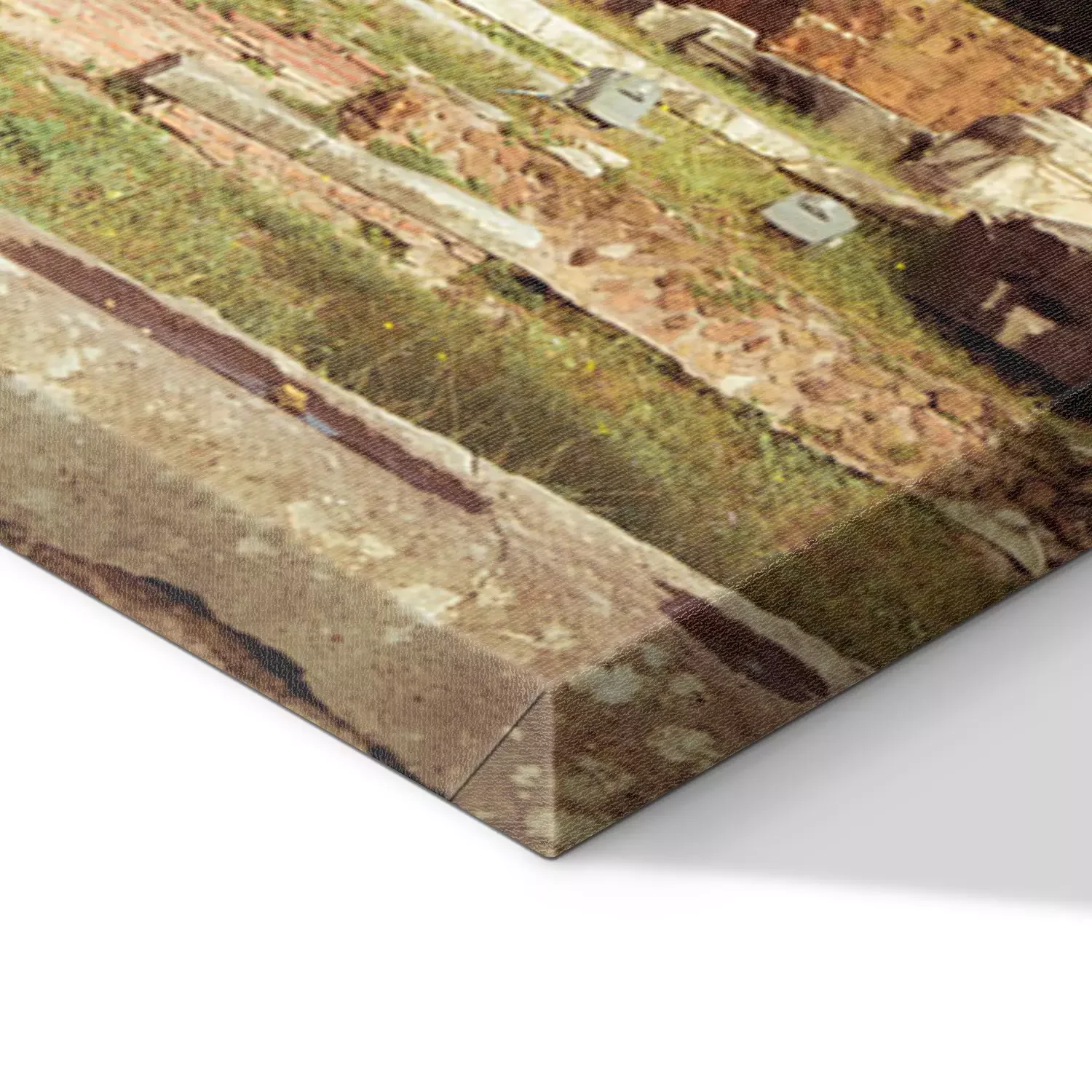 De print wordt aangebracht op hoogwaardig canvas dat op een schildersweefgetouw (spieraam) wordt gespannen. Omdat de print de zijranden bedekt, hoeft het ontwerp niet met een extra kader te worden omlijst. Wij raden ook composities aan die uit meerdere foto's bestaan en zo een coherente compositie vormen.