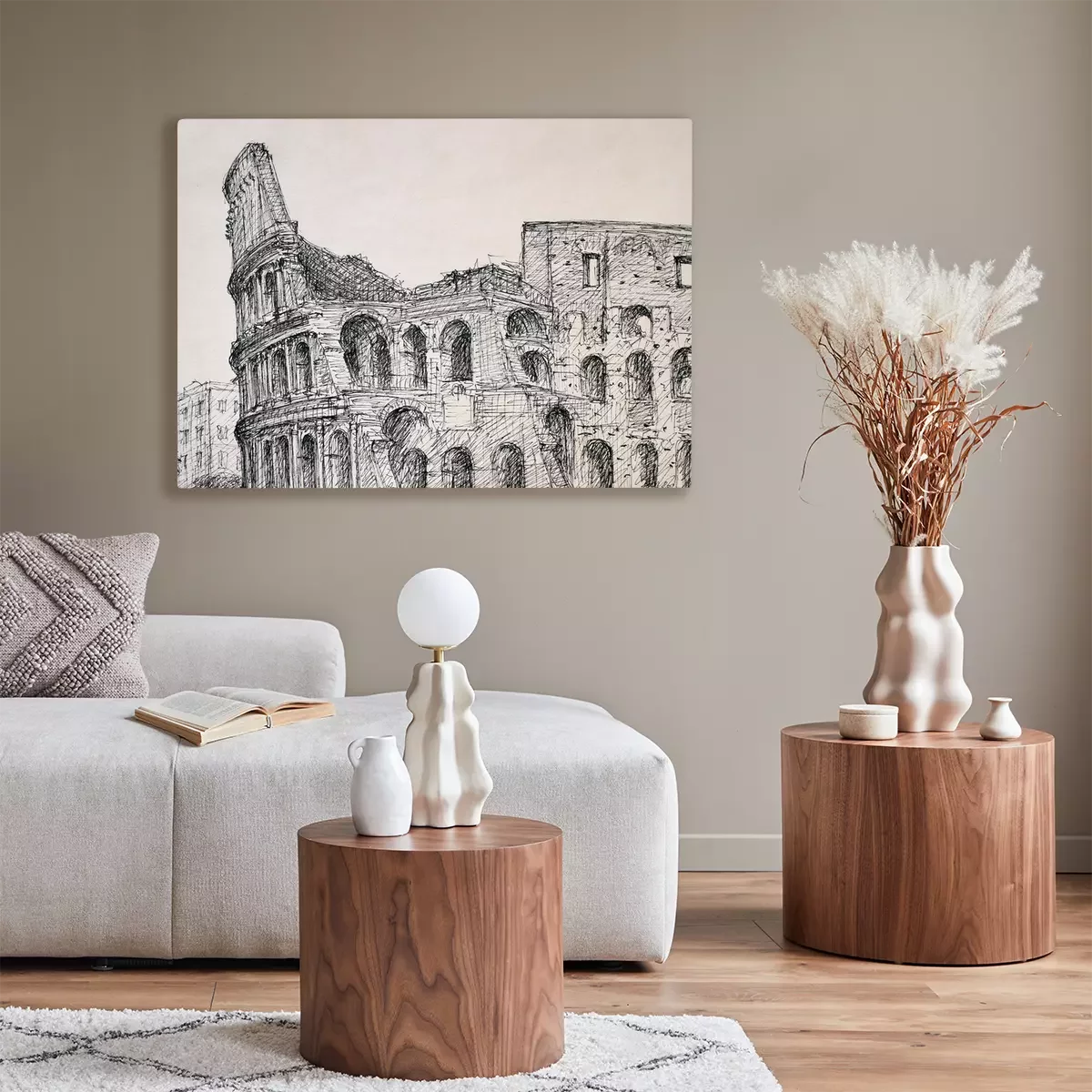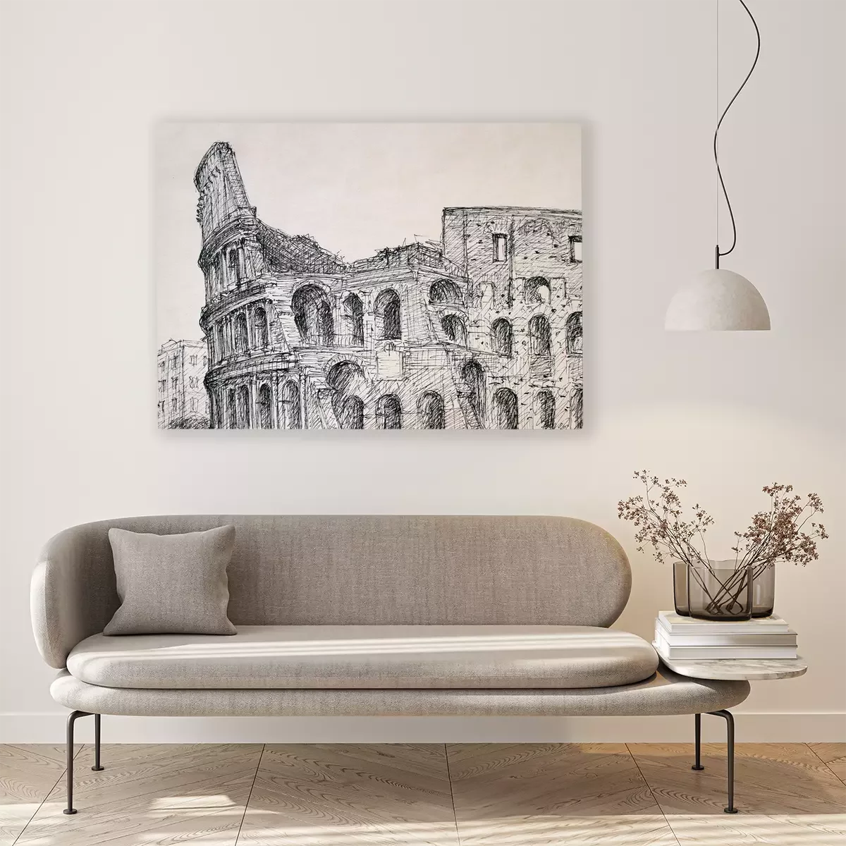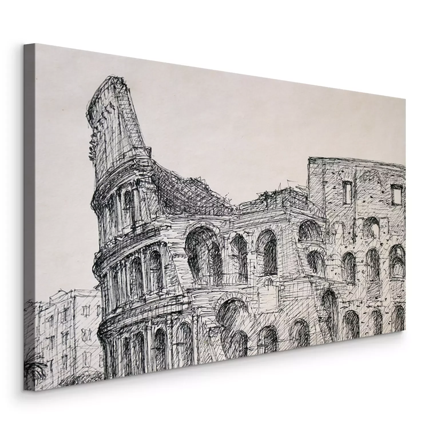Canvas: Romeinse stadsgezicht van het Colosseum geschilderd door inkt