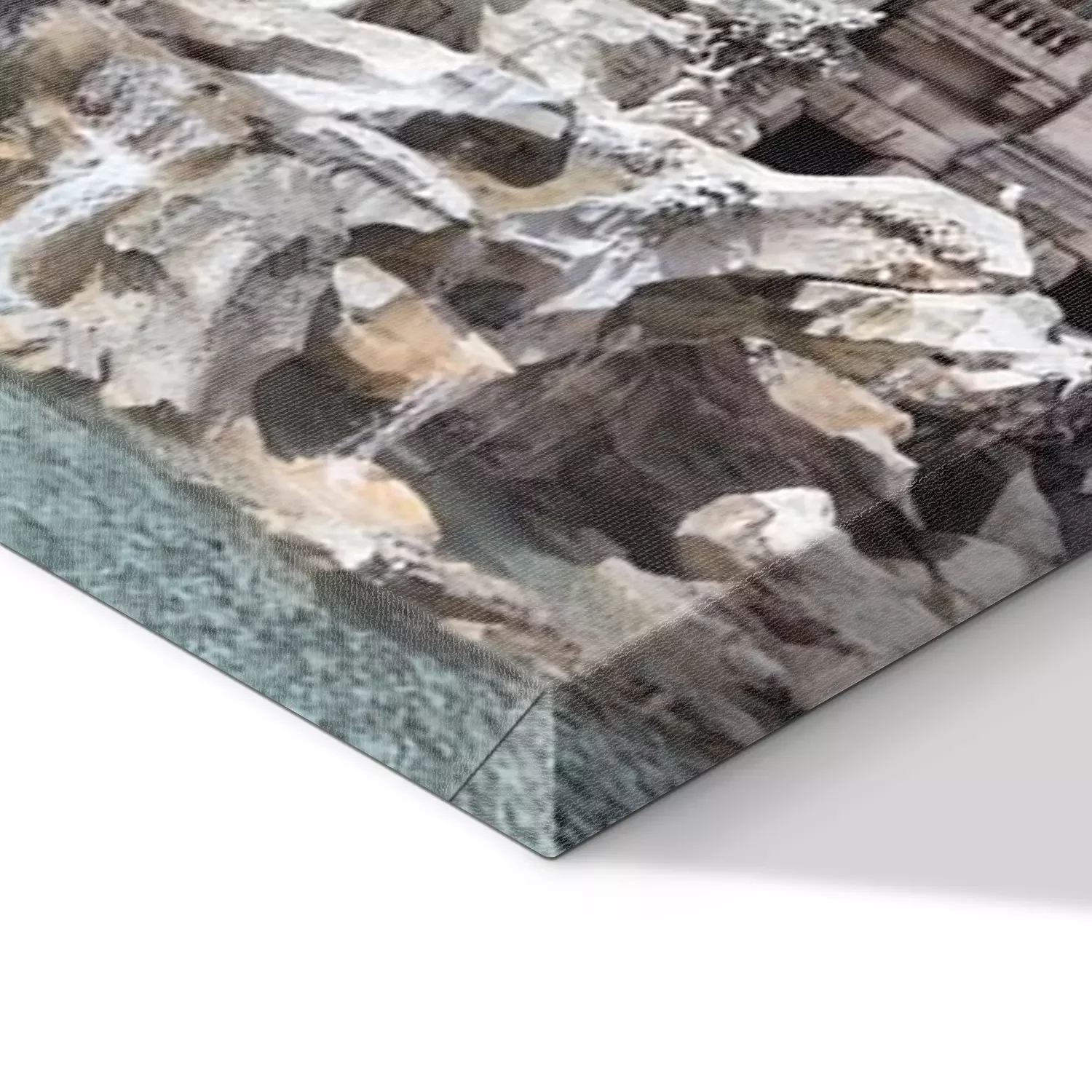 De print wordt aangebracht op hoogwaardig canvas dat op een schildersweefgetouw (spieraam) wordt gespannen. Omdat de print de zijranden bedekt, hoeft het ontwerp niet met een extra kader te worden omlijst. Wij raden ook composities aan die uit meerdere foto's bestaan en zo een coherente compositie vormen.