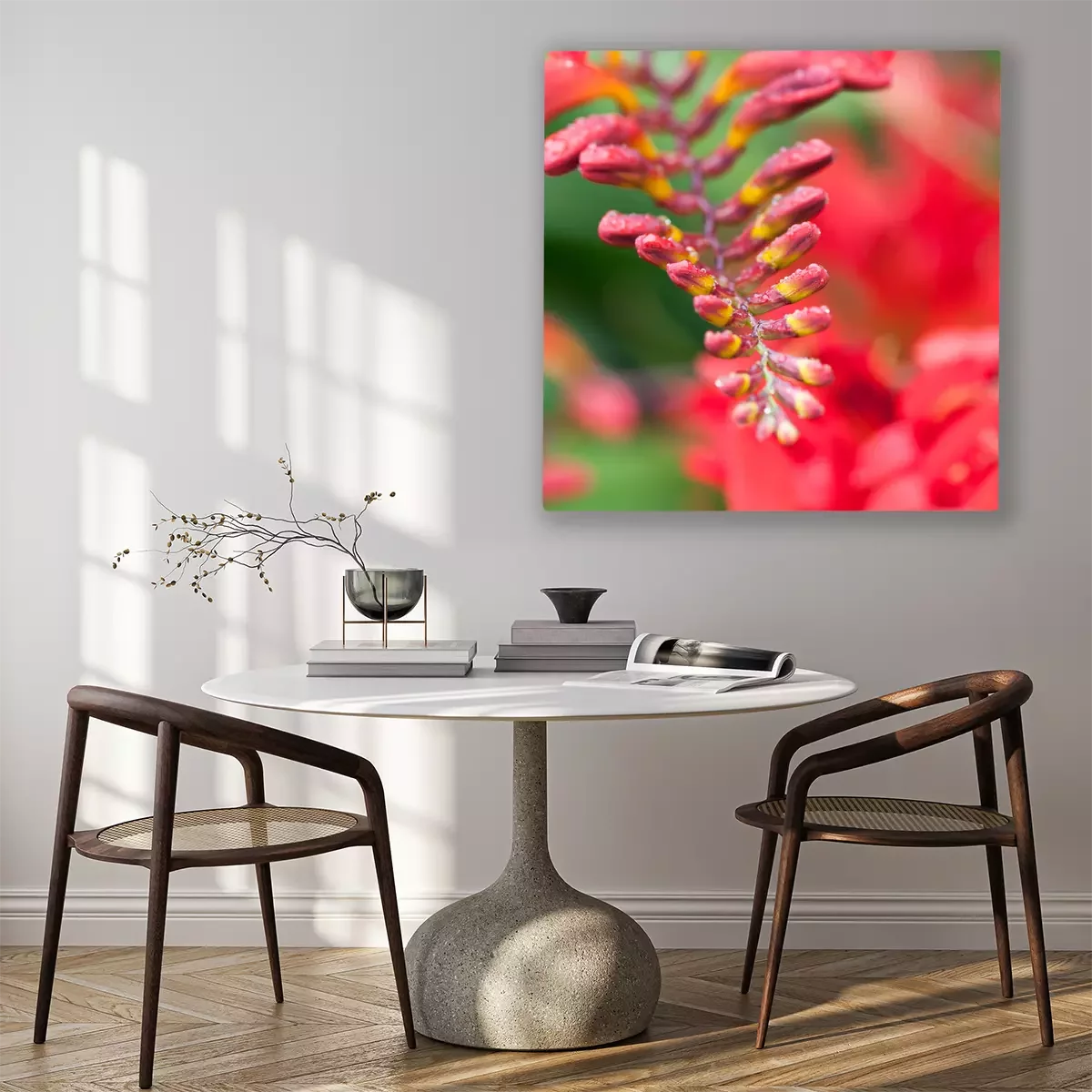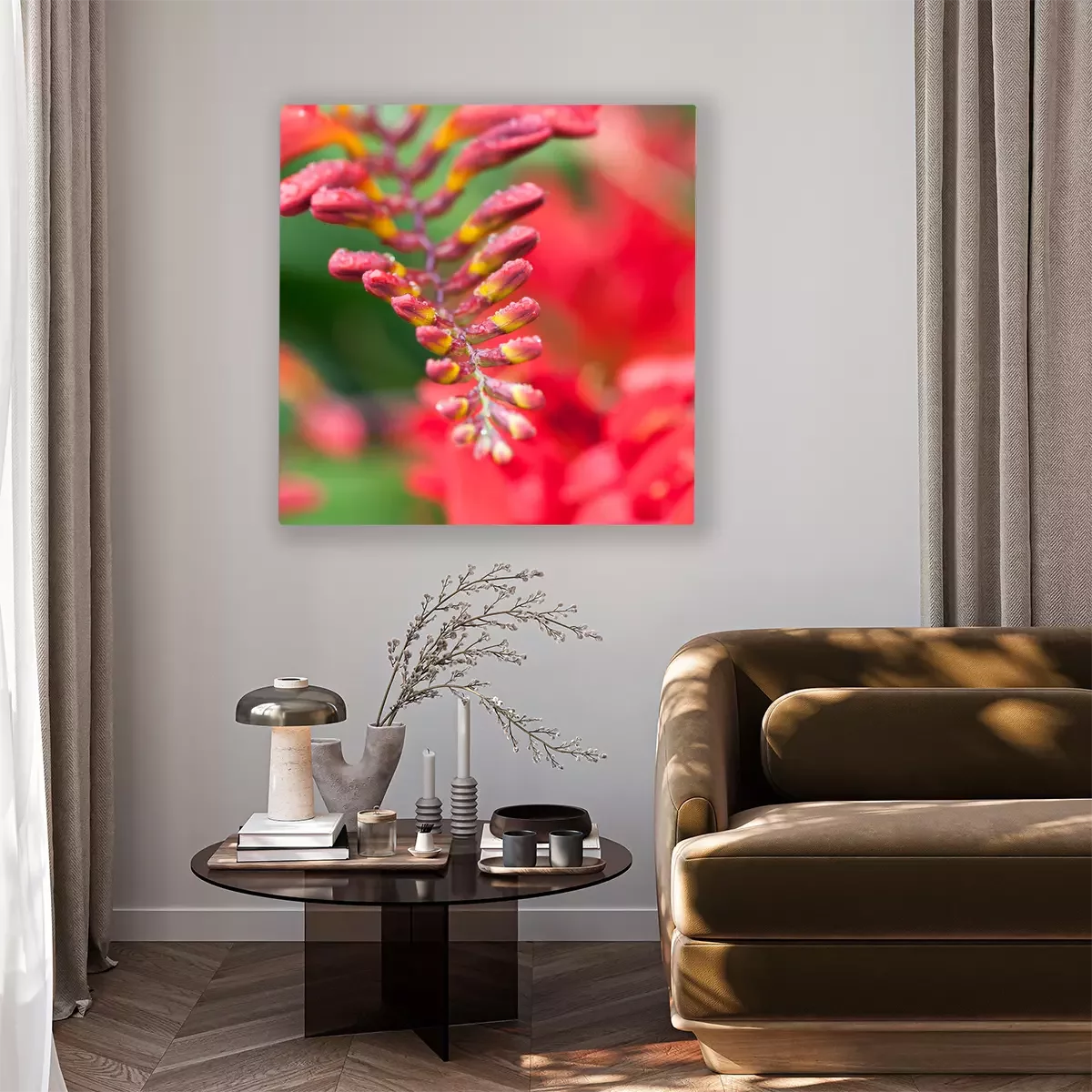 De print wordt aangebracht op hoogwaardig canvas dat op een schildersweefgetouw (spieraam) wordt gespannen. Omdat de print de zijranden bedekt, hoeft het ontwerp niet met een extra kader te worden omlijst. Wij raden ook composities aan die uit meerdere foto's bestaan en zo een coherente compositie vormen.