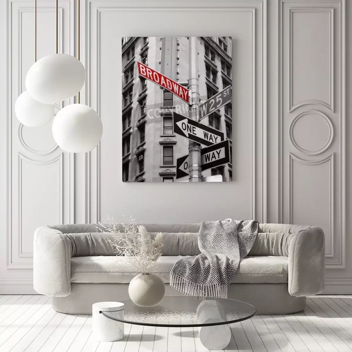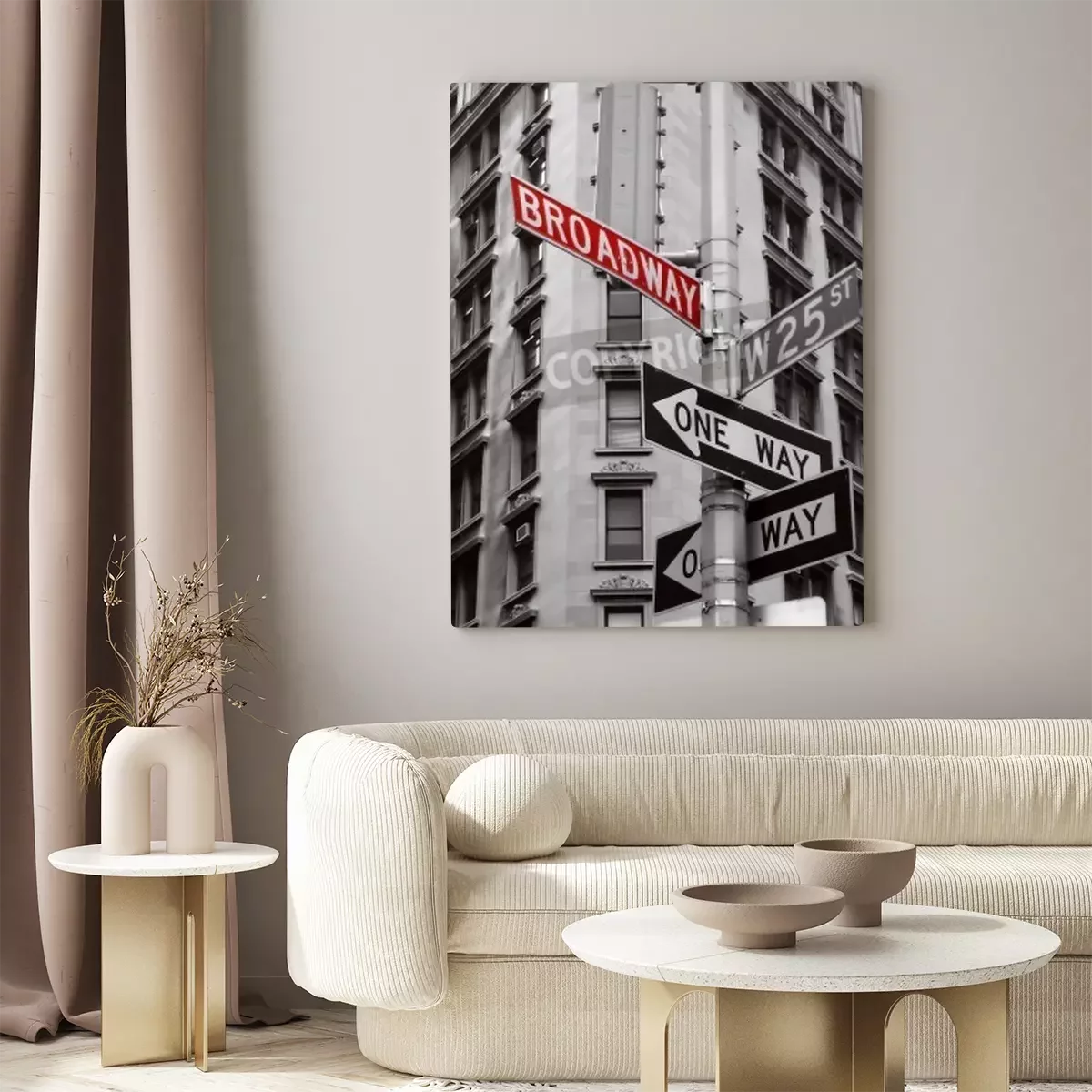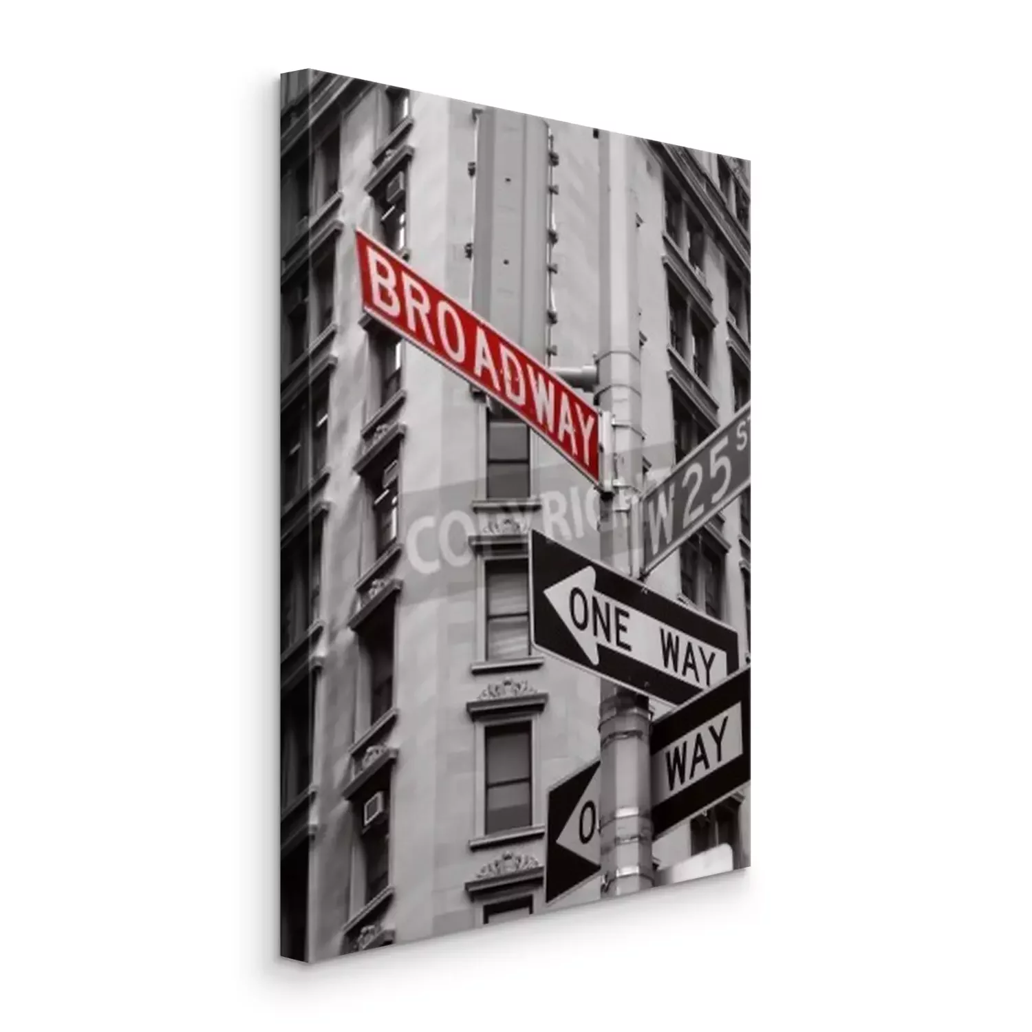 Canvas rood broadway ondertekenen in een zwart-wit foto van new york stad tekenen