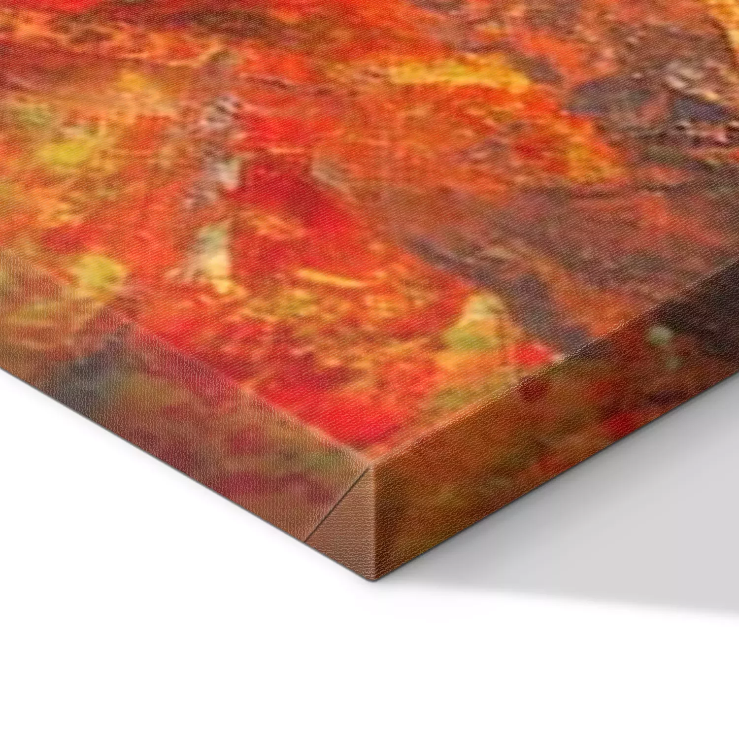 De print wordt aangebracht op hoogwaardig canvas dat op een schildersweefgetouw (spieraam) wordt gespannen. Omdat de print de zijranden bedekt, hoeft het ontwerp niet met een extra kader te worden omlijst. Wij raden ook composities aan die uit meerdere foto's bestaan en zo een coherente compositie vormen.