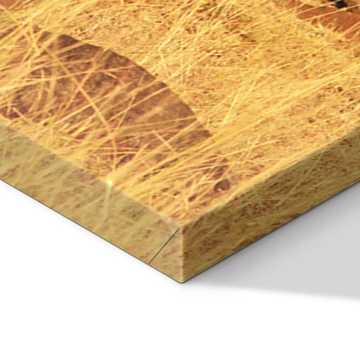 De print wordt aangebracht op hoogwaardig canvas dat op een schildersweefgetouw (spieraam) wordt gespannen. Omdat de print de zijranden bedekt, hoeft het ontwerp niet met een extra kader te worden omlijst. Wij raden ook composities aan die uit meerdere foto's bestaan en zo een coherente compositie vormen.
