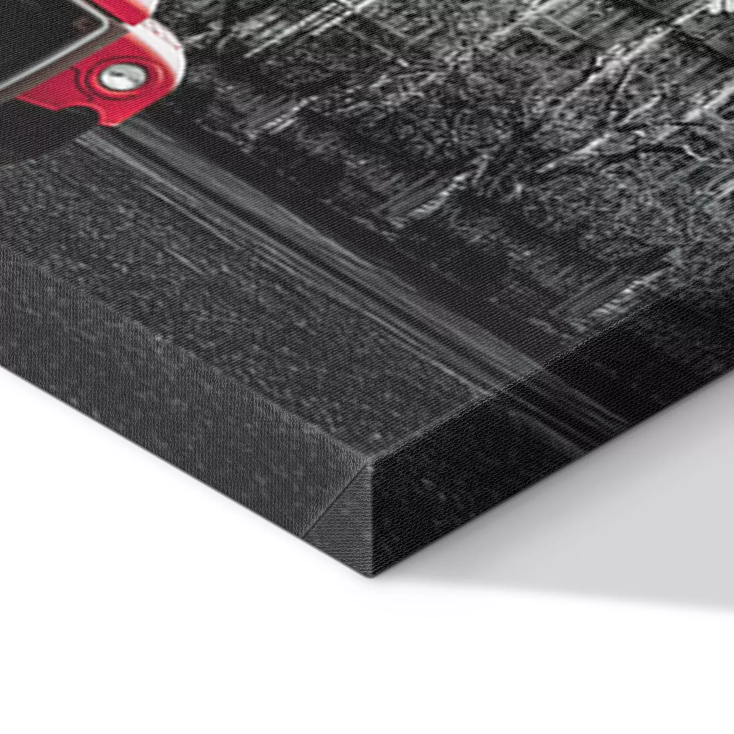 De print wordt aangebracht op hoogwaardig canvas dat op een schildersweefgetouw (spieraam) wordt gespannen. Omdat de print de zijranden bedekt, hoeft het ontwerp niet met een extra kader te worden omlijst. Wij raden ook composities aan die uit meerdere foto's bestaan en zo een coherente compositie vormen.
