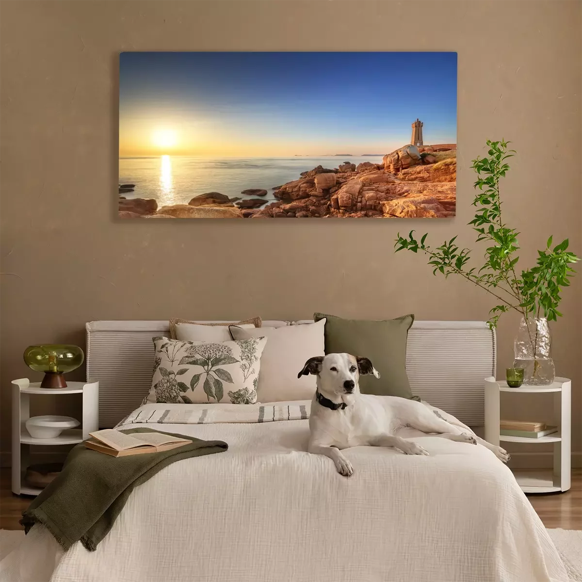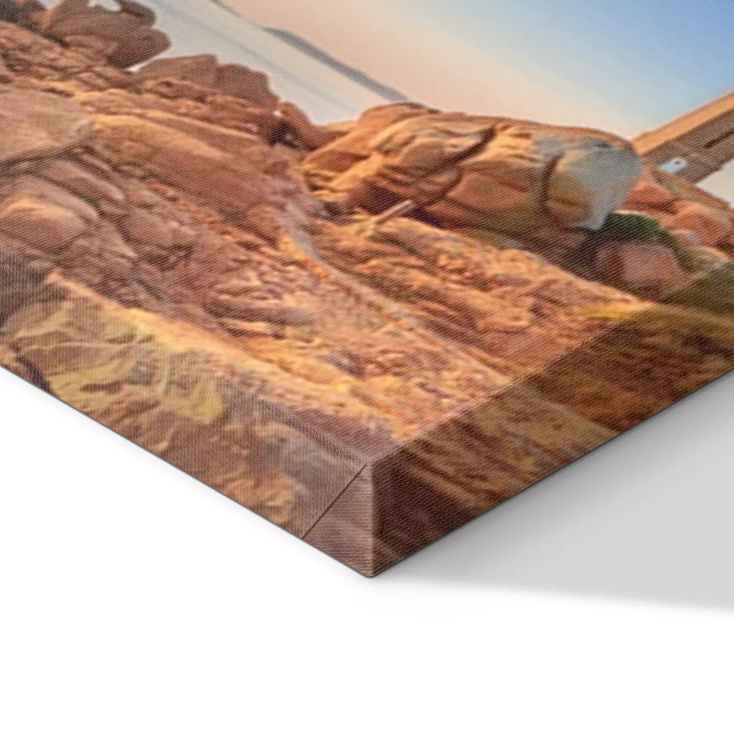 De print wordt aangebracht op hoogwaardig canvas dat op een schildersweefgetouw (spieraam) wordt gespannen. Omdat de print de zijranden bedekt, hoeft het ontwerp niet met een extra kader te worden omlijst. Wij raden ook composities aan die uit meerdere foto's bestaan en zo een coherente compositie vormen.