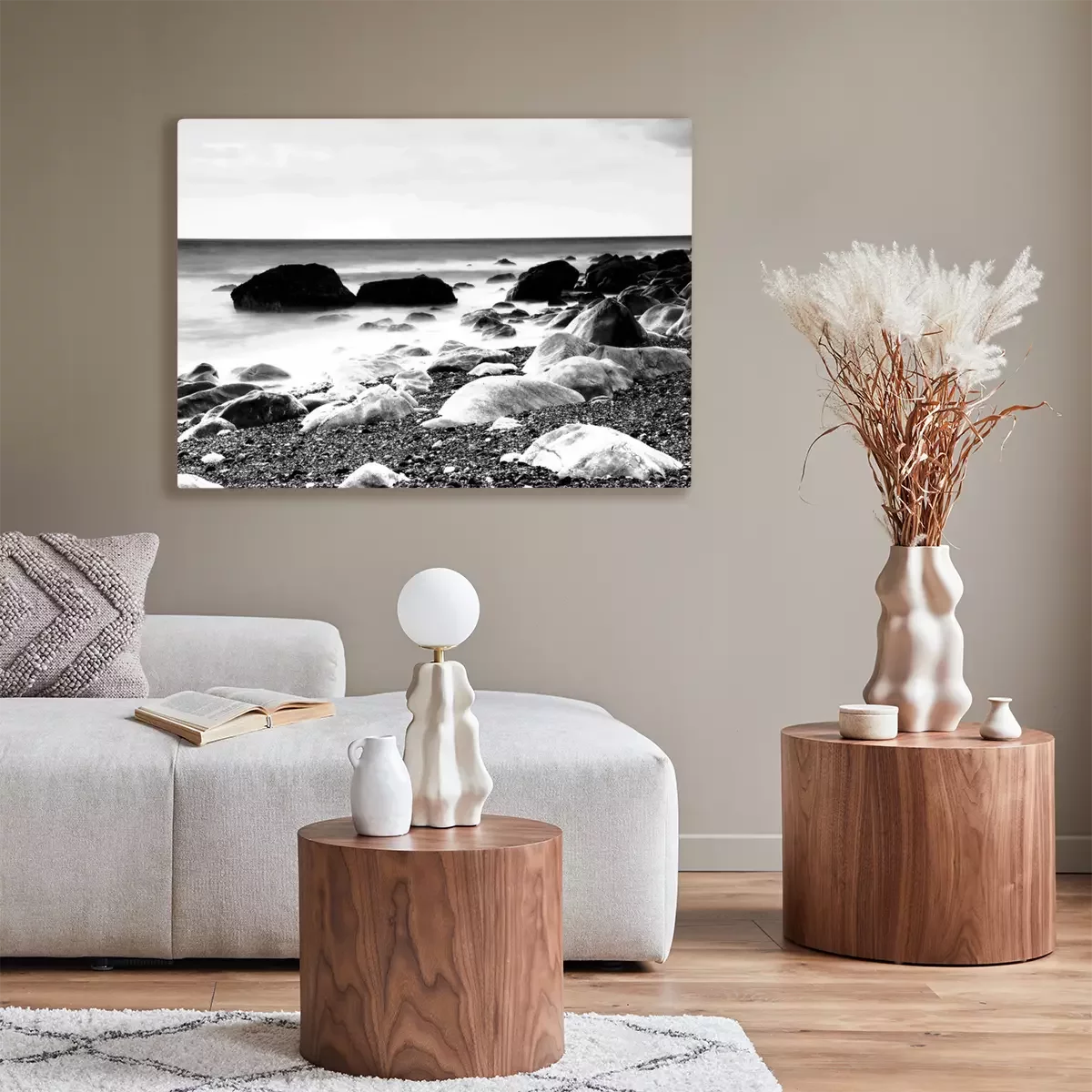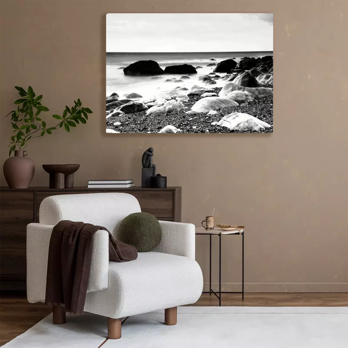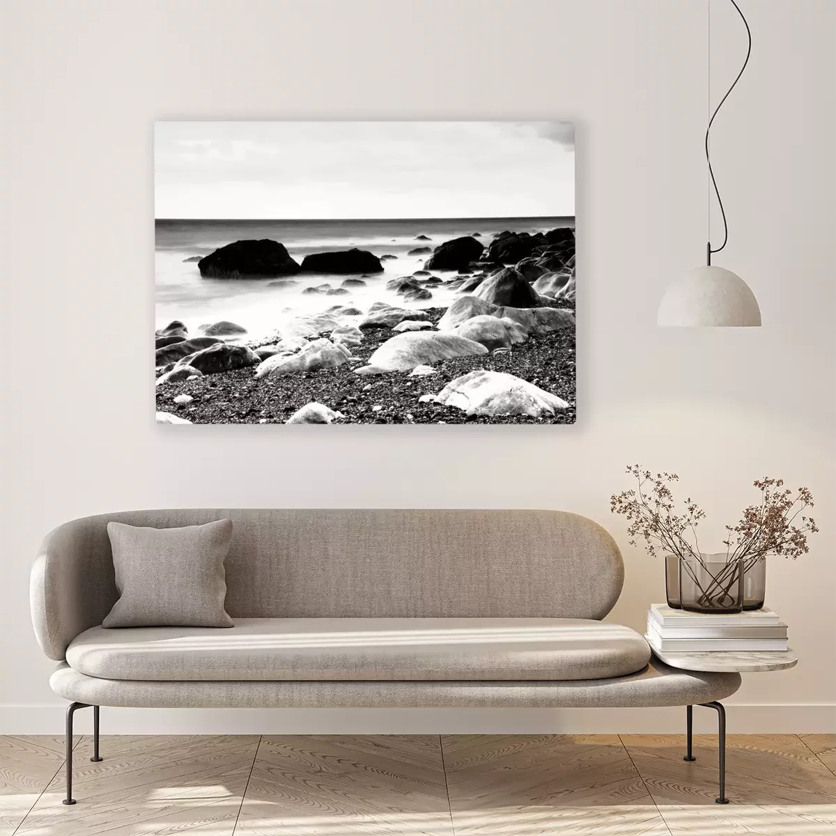 Canvas: Rotsen door strand