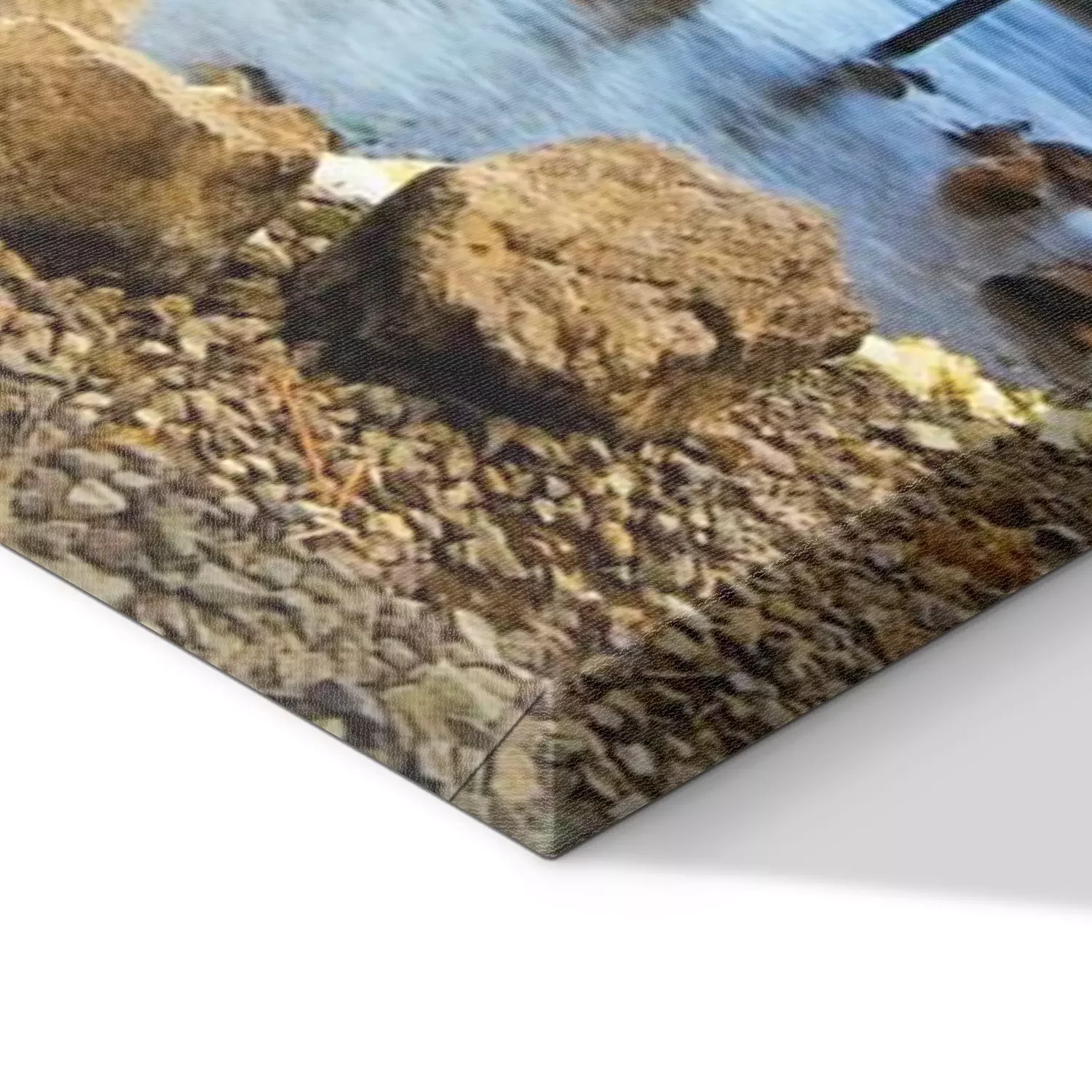 De print wordt aangebracht op hoogwaardig canvas dat op een schildersweefgetouw (spieraam) wordt gespannen. Omdat de print de zijranden bedekt, hoeft het ontwerp niet met een extra kader te worden omlijst. Wij raden ook composities aan die uit meerdere foto's bestaan en zo een coherente compositie vormen.