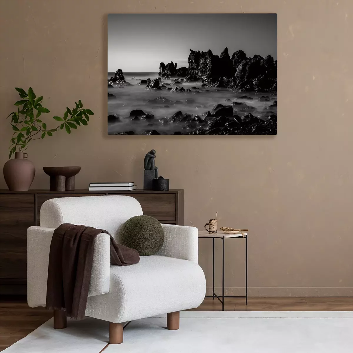 De print wordt aangebracht op hoogwaardig canvas dat op een schildersweefgetouw (spieraam) wordt gespannen. Omdat de print de zijranden bedekt, hoeft het ontwerp niet met een extra kader te worden omlijst. Wij raden ook composities aan die uit meerdere foto's bestaan en zo een coherente compositie vormen.